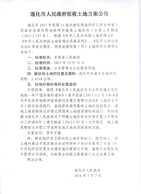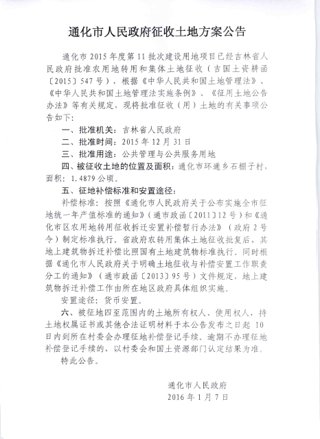 当前位置: 首页>>通化市自然资源局专栏>>征地信息>>征收土地方案公告
