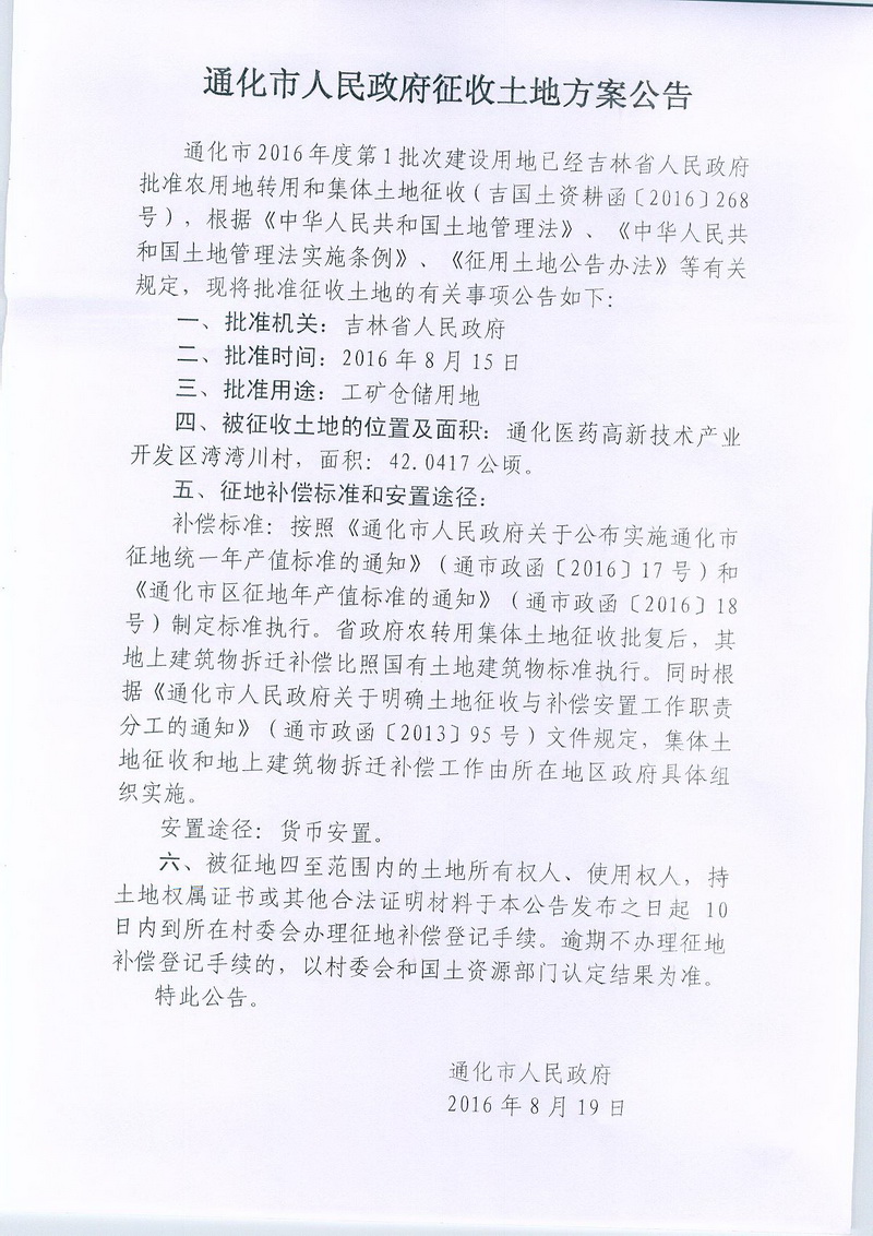 当前位置: 首页>>通化市自然资源局专栏>>征地信息>>征收土地方案公告