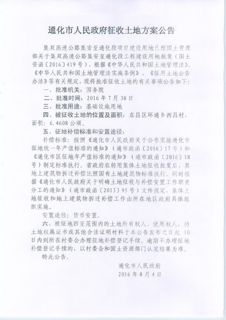 当前位置: 首页>>通化市自然资源局专栏>>征地信息>>征收土地方案公告