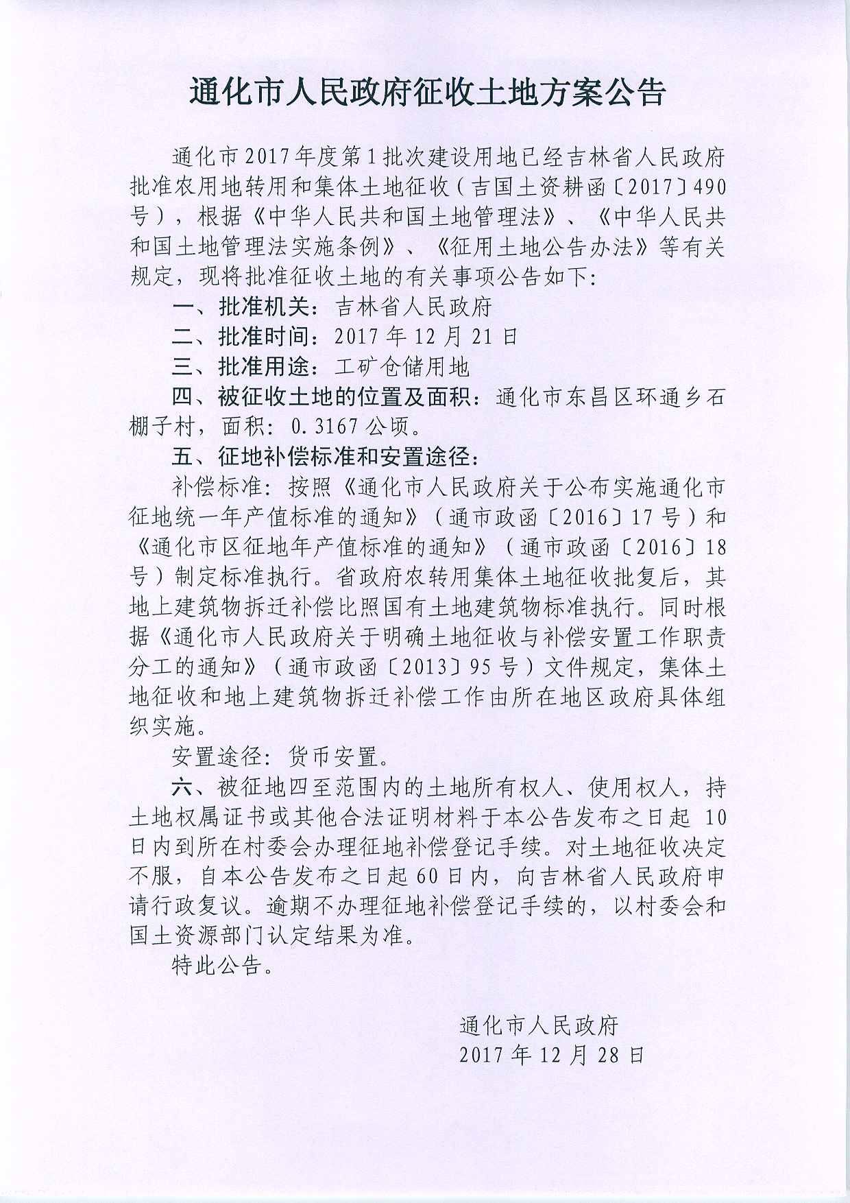 通化市2017年第1批次征土地方案公告