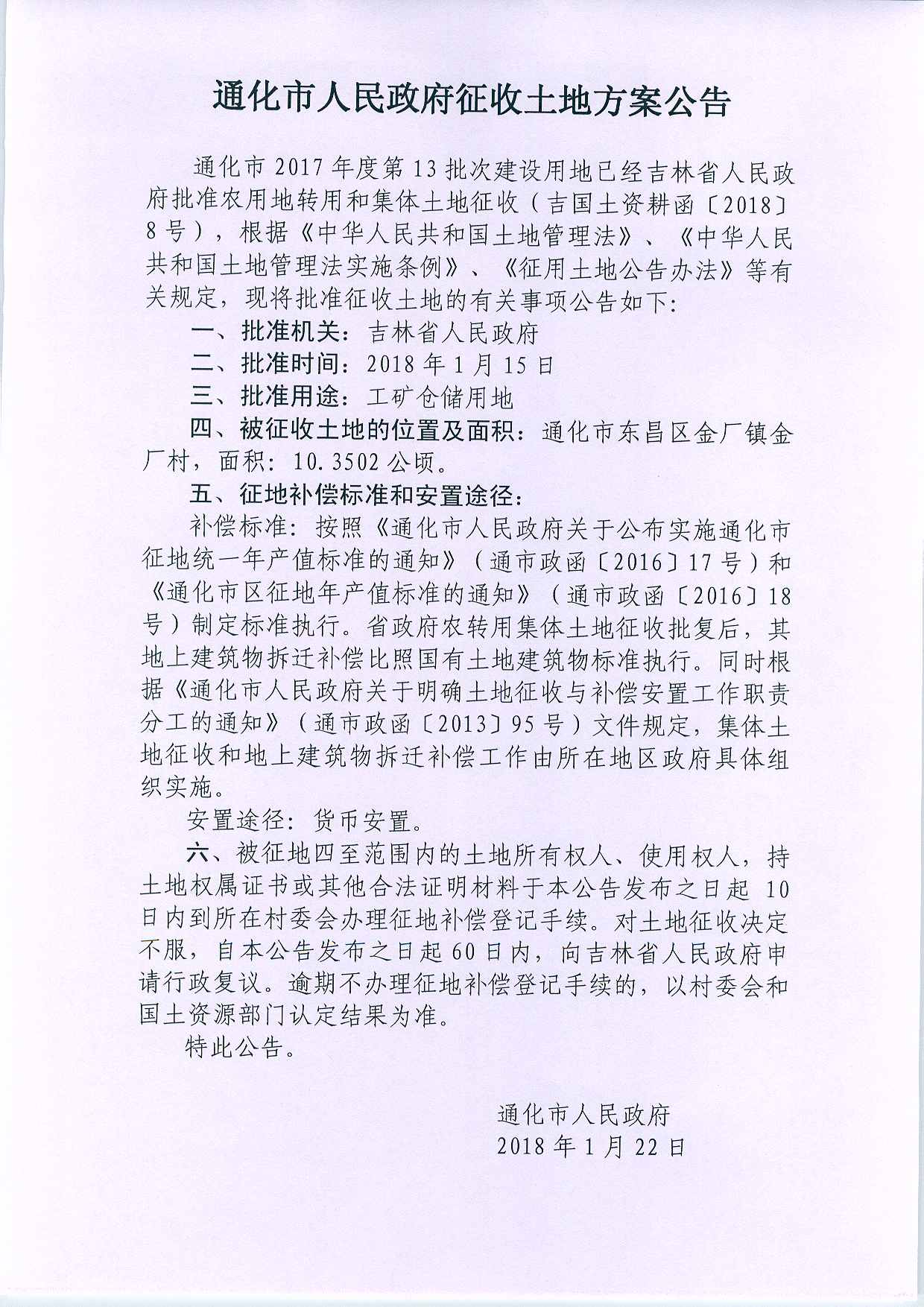 通化市2017年第13批次征收土地方案公告
