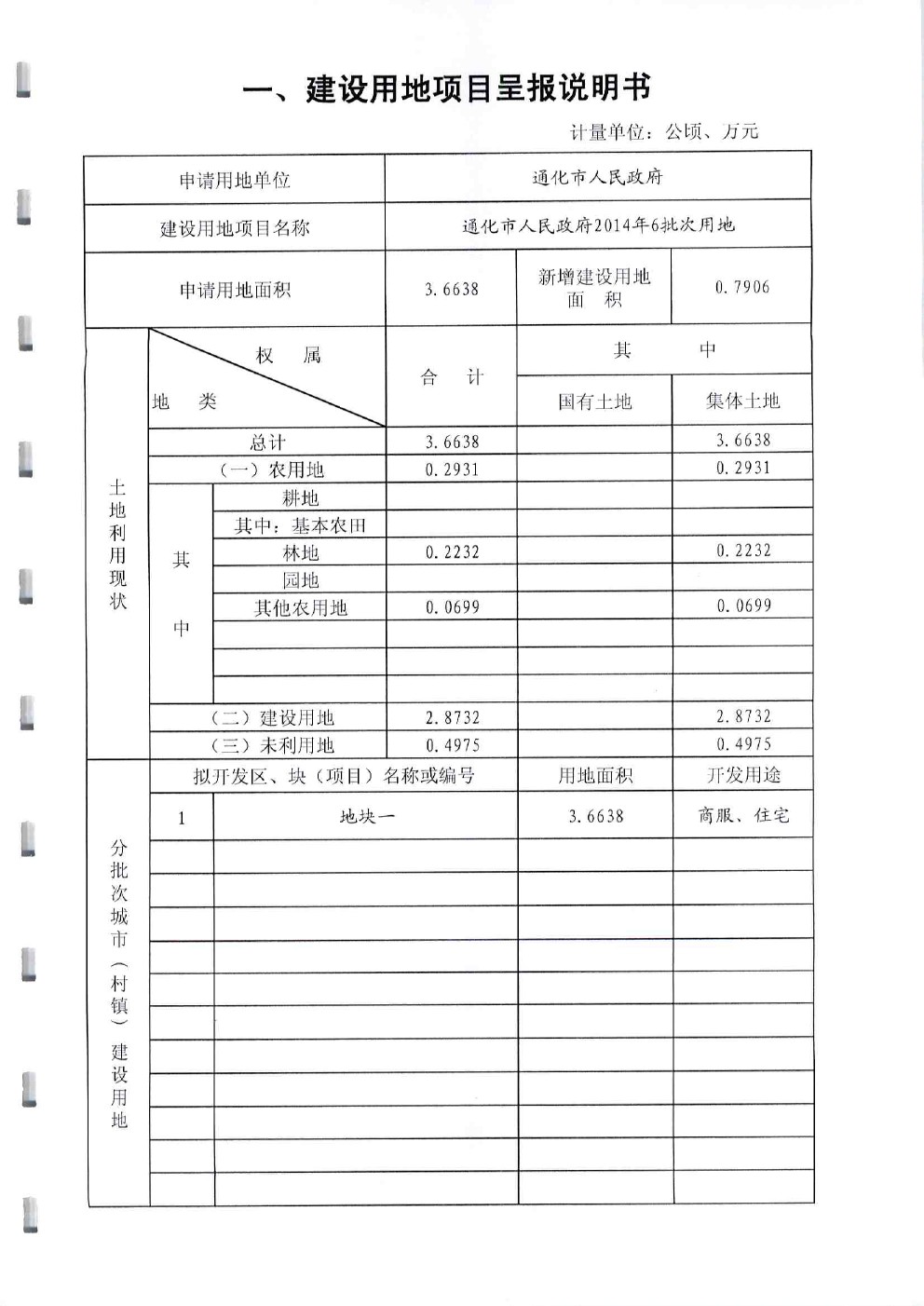 通化市人民政府2014年第6批次建设用地项目呈报材料“一书四方案”