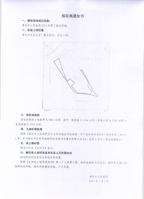 通化市人民政府2014年第2批次用地