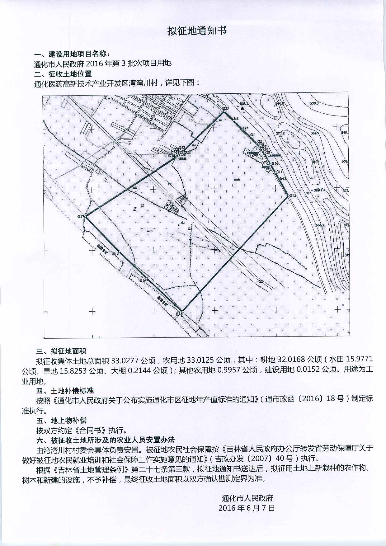 通化市政府2016年3批次拟征地通知书
