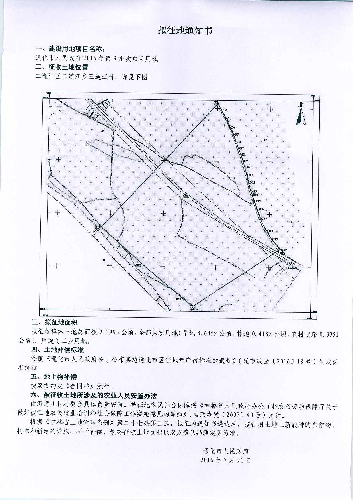 通化市政府2016年第9批次拟征地通知书
