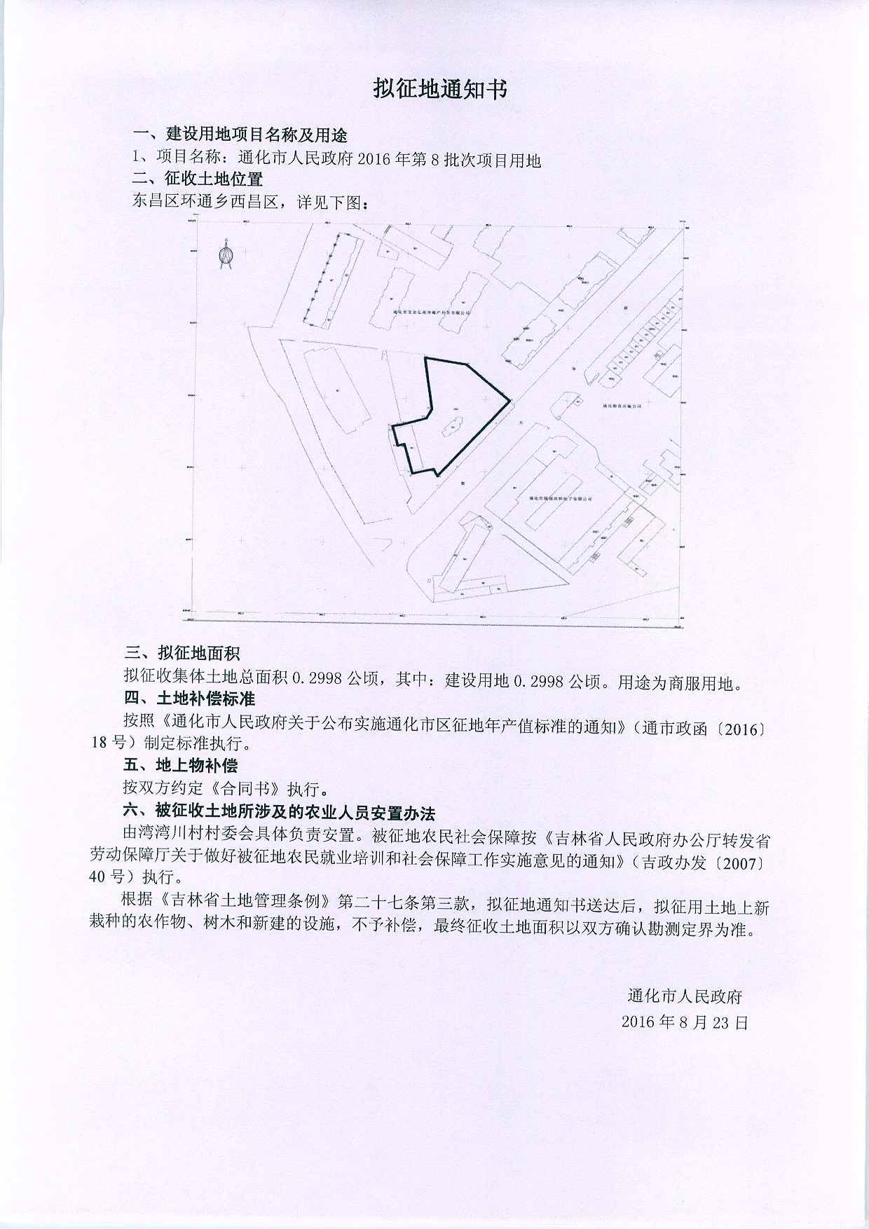通化市2016年第8批次拟征地通知书