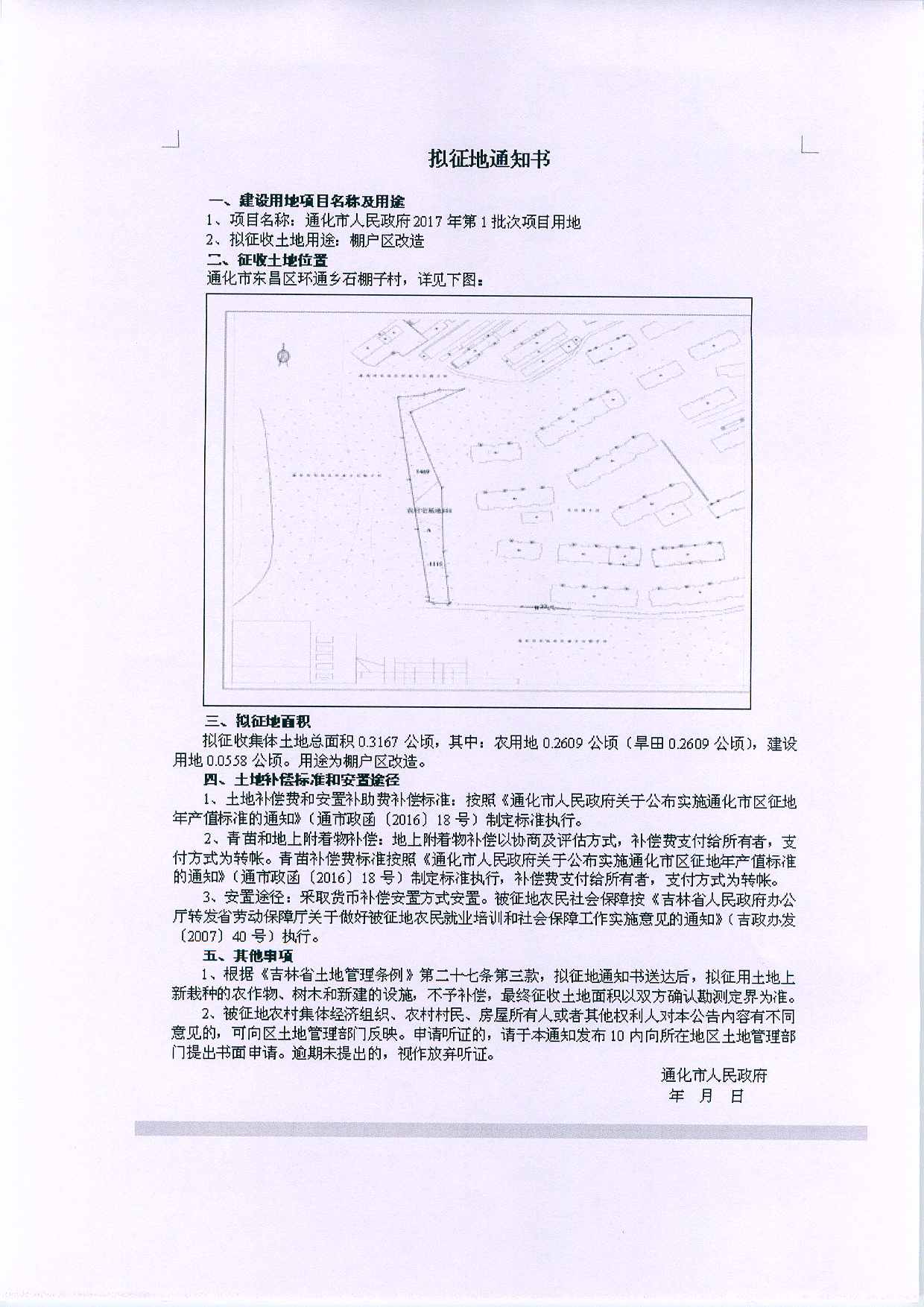 通化市2017年第1批次拟征地通知书