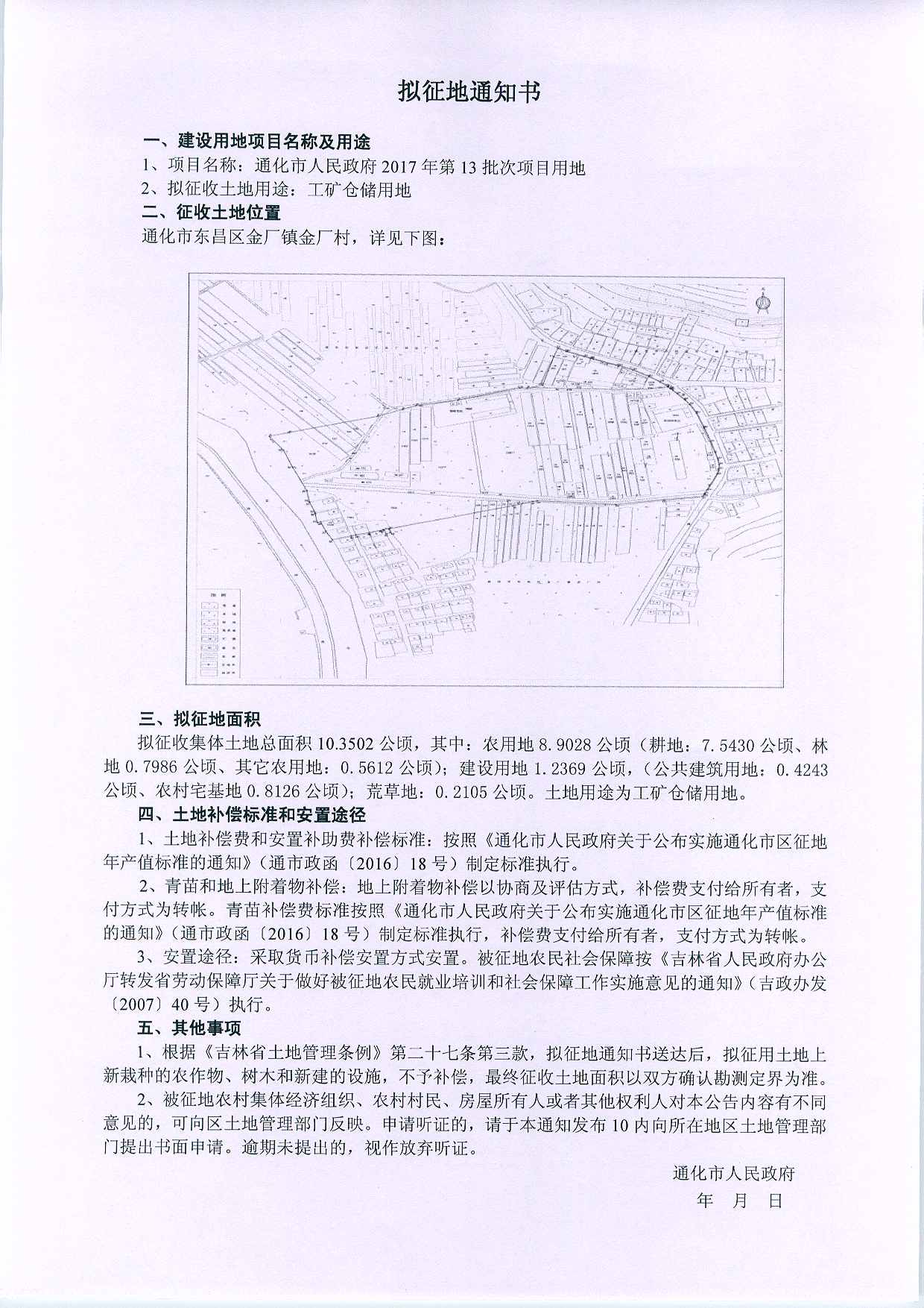 通化市2017年第13批次拟征地通知书