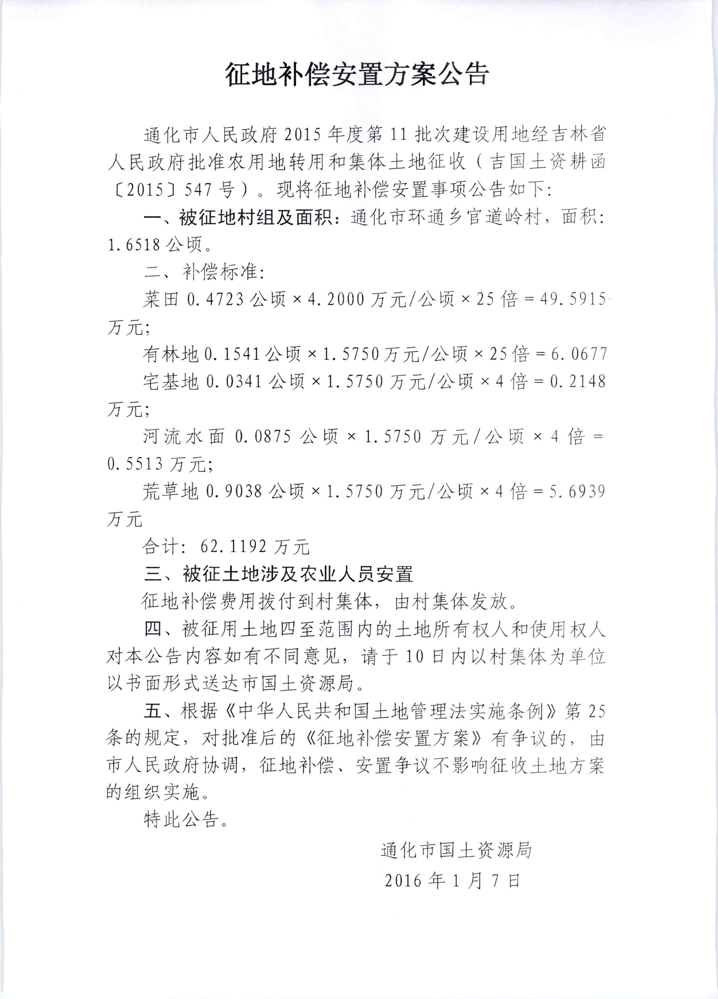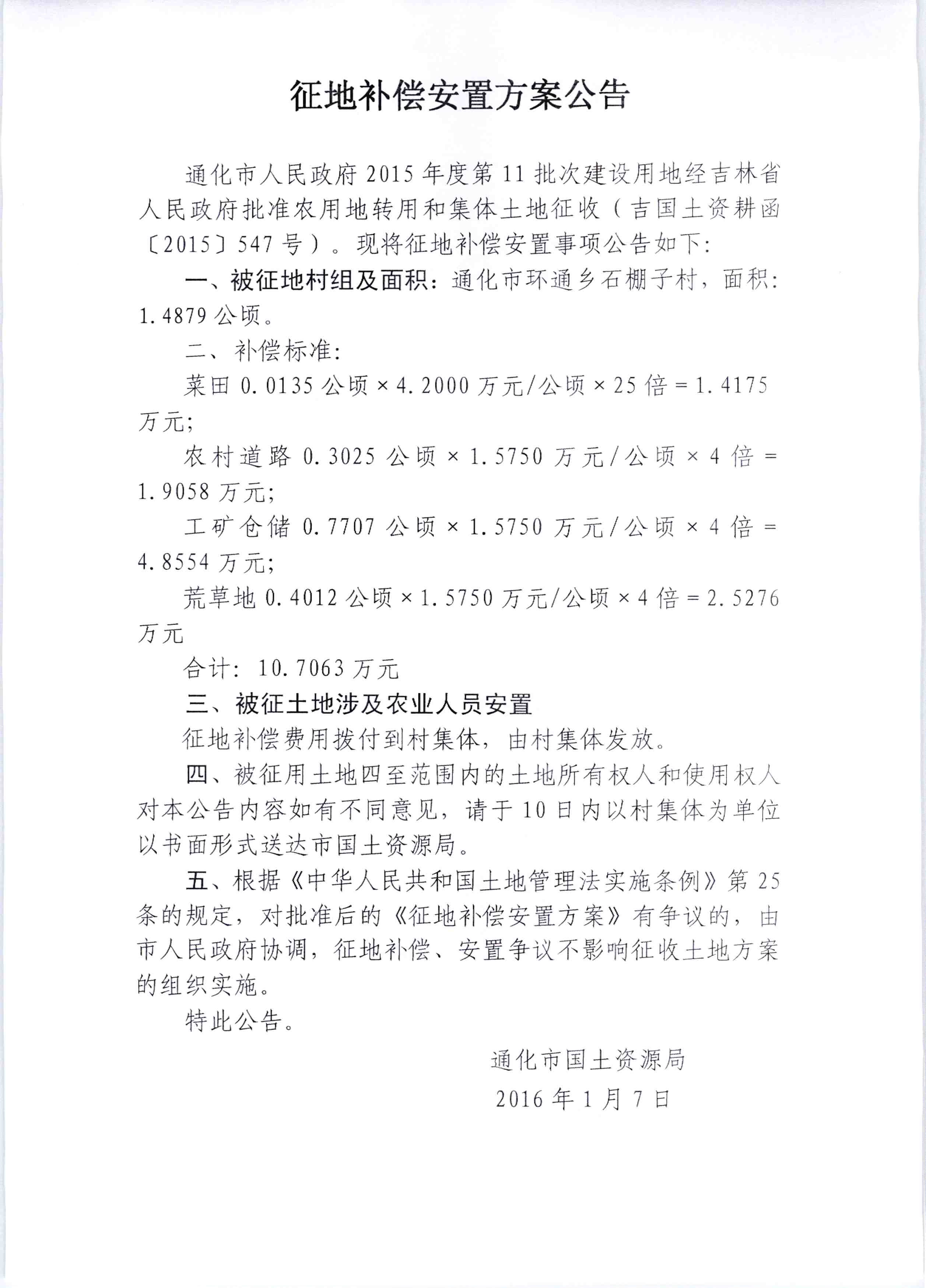 当前位置: 首页>>通化市自然资源局专栏>>征地信息>>征收补偿方案公告