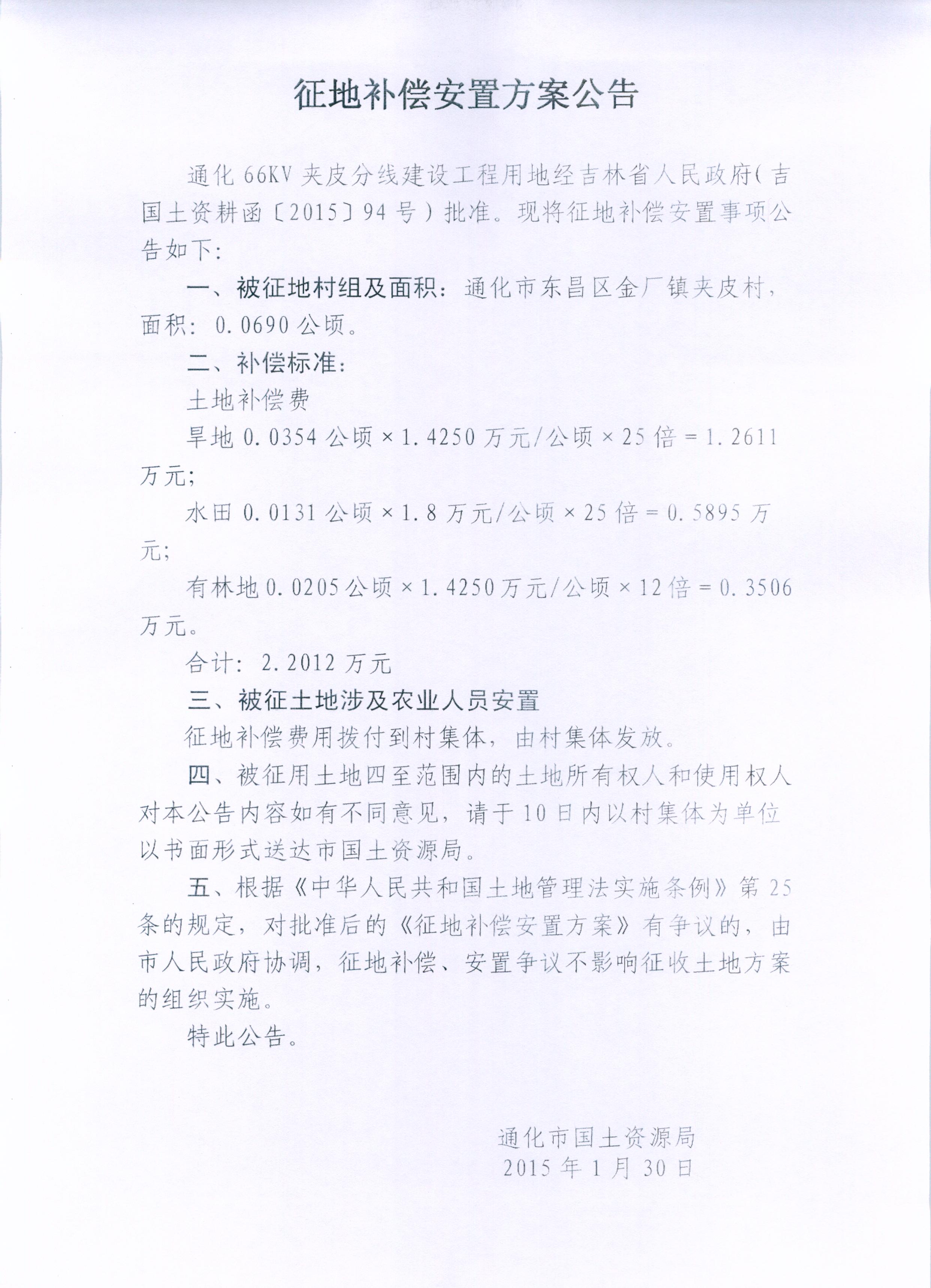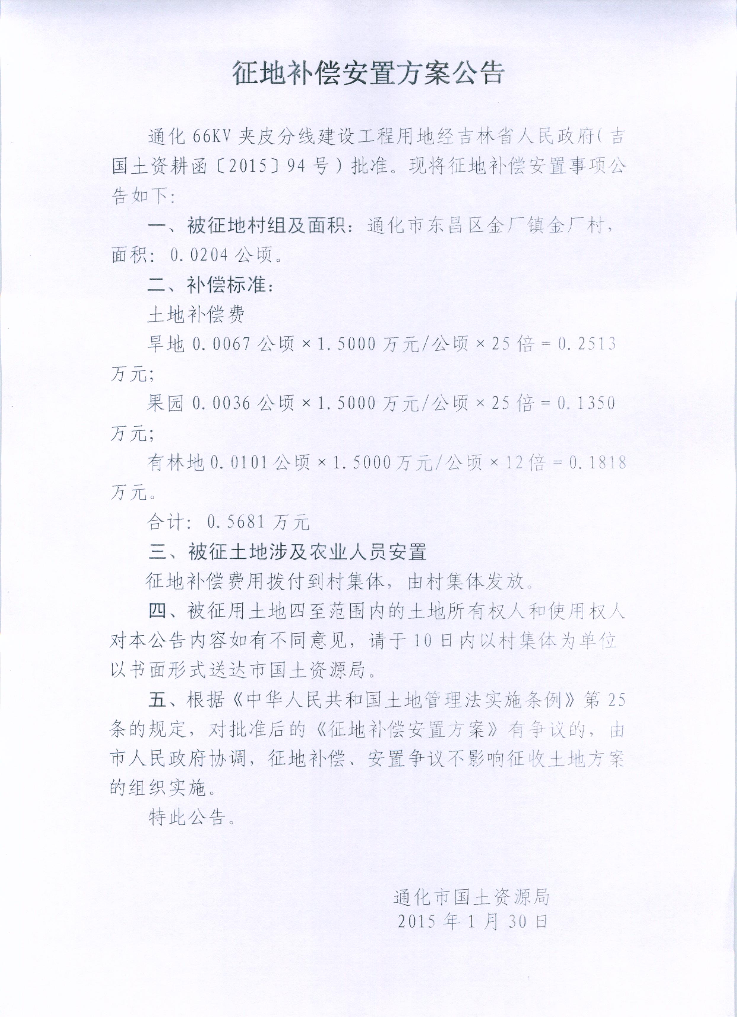 当前位置: 首页>>通化市自然资源局专栏>>征地信息>>征收补偿方案公告