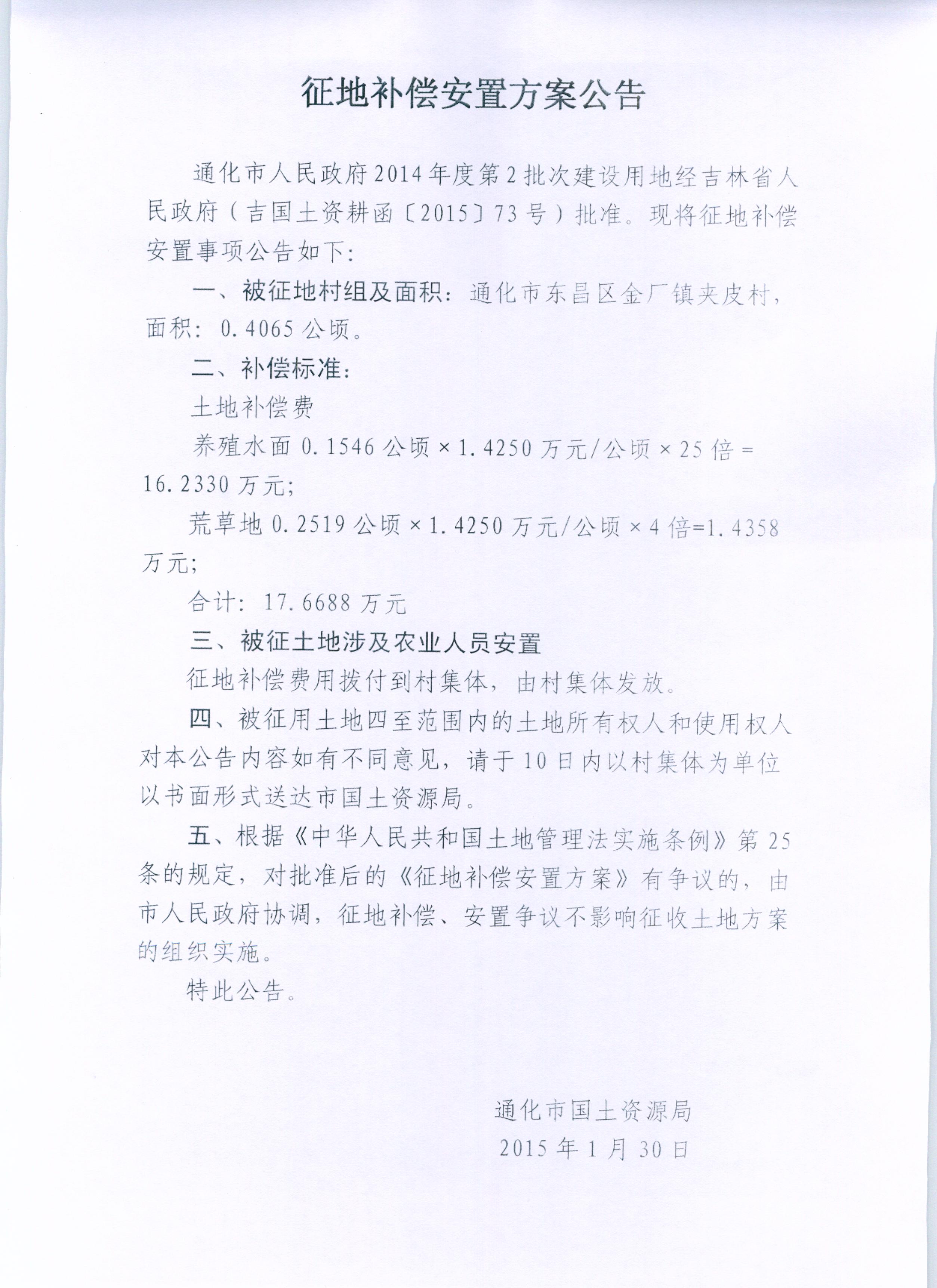 当前位置: 首页>>通化市自然资源局专栏>>征地信息>>征收补偿方案公告