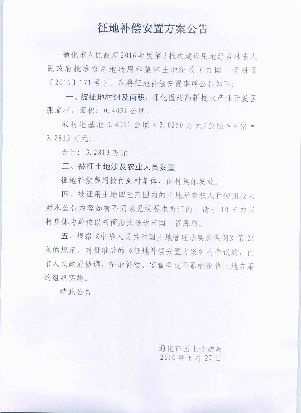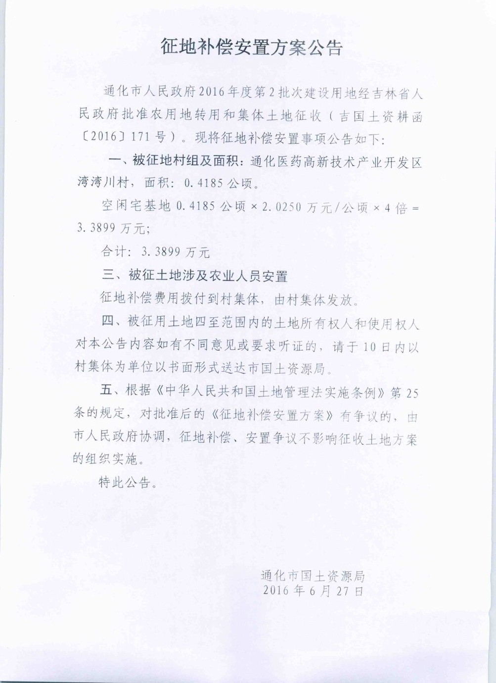 当前位置: 首页>>通化市自然资源局专栏>>征地信息>>征收补偿方案公告