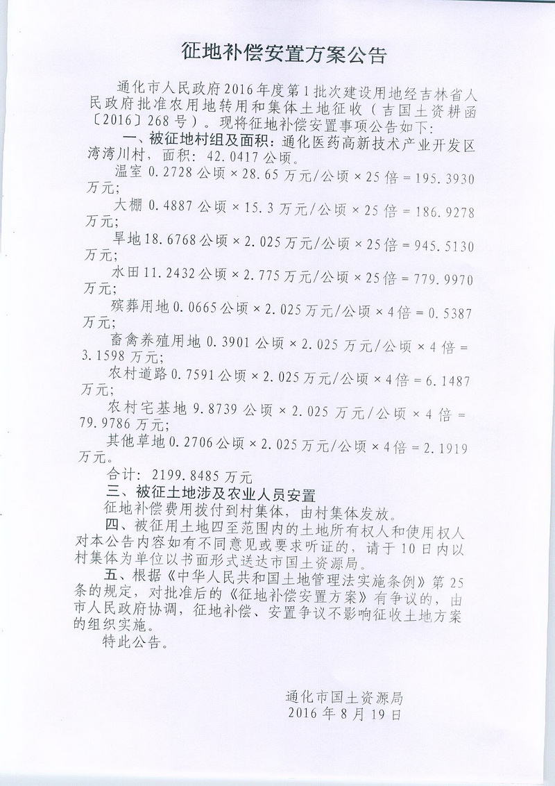当前位置: 首页>>通化市自然资源局专栏>>征地信息>>征收补偿方案公告