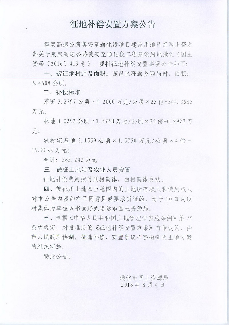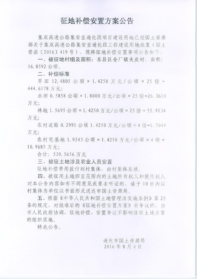 当前位置: 首页>>通化市自然资源局专栏>>征地信息>>征收补偿方案公告