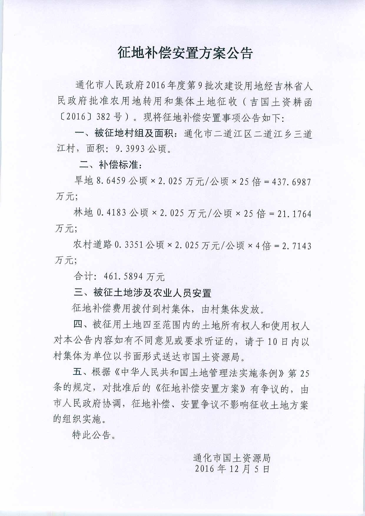 当前位置: 首页>>通化市自然资源局专栏>>征地信息>>征收补偿方案公告