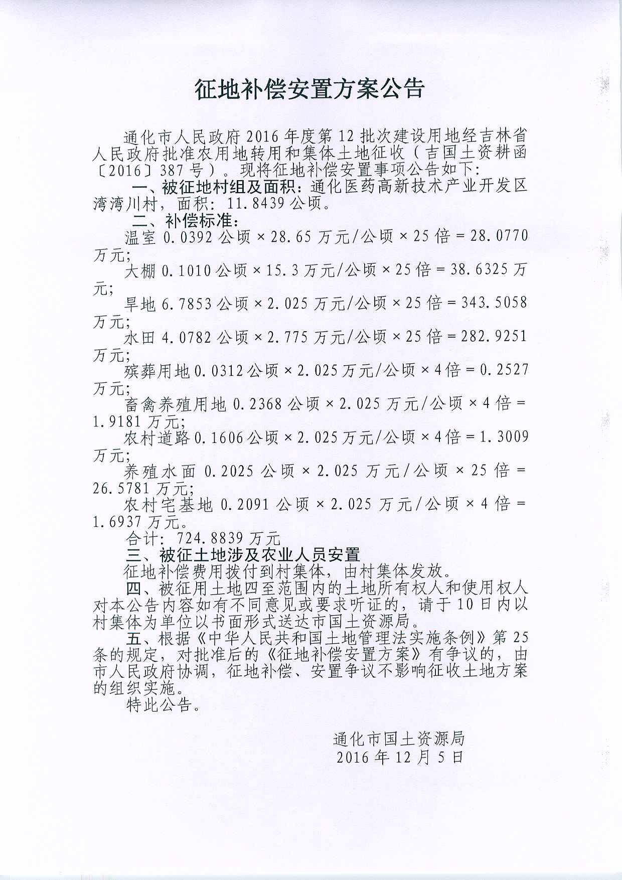 当前位置: 首页>>通化市自然资源局专栏>>征地信息>>征收补偿方案公告