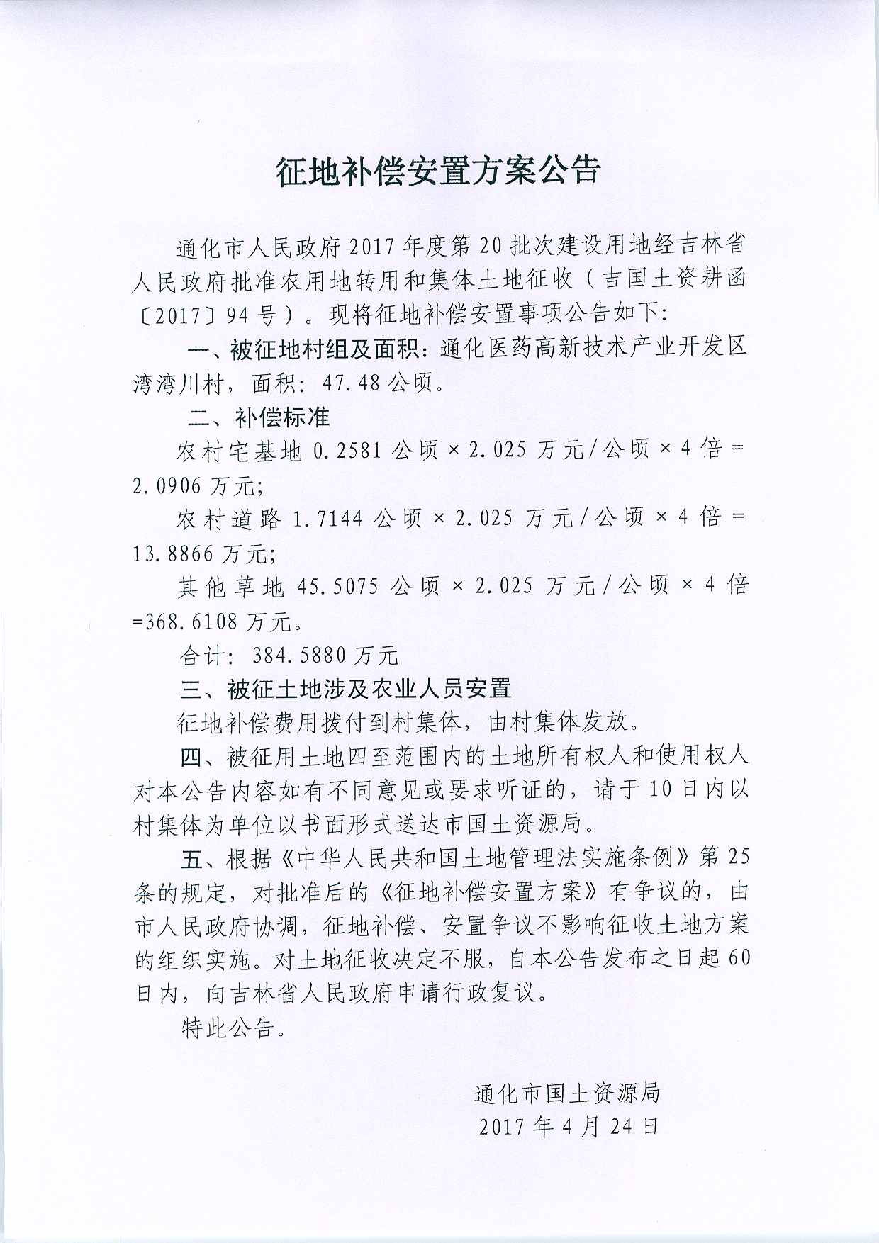 当前位置: 首页>>通化市自然资源局专栏>>征地信息>>征收补偿方案公告