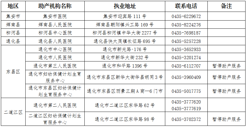 通化市助产机构名单