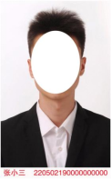 (五)白底小二寸免冠近照2张(裁剪好,装入透明小密封袋)。照片底边文字为姓名、身份证号,字体为红色黑体五号。样式如下: