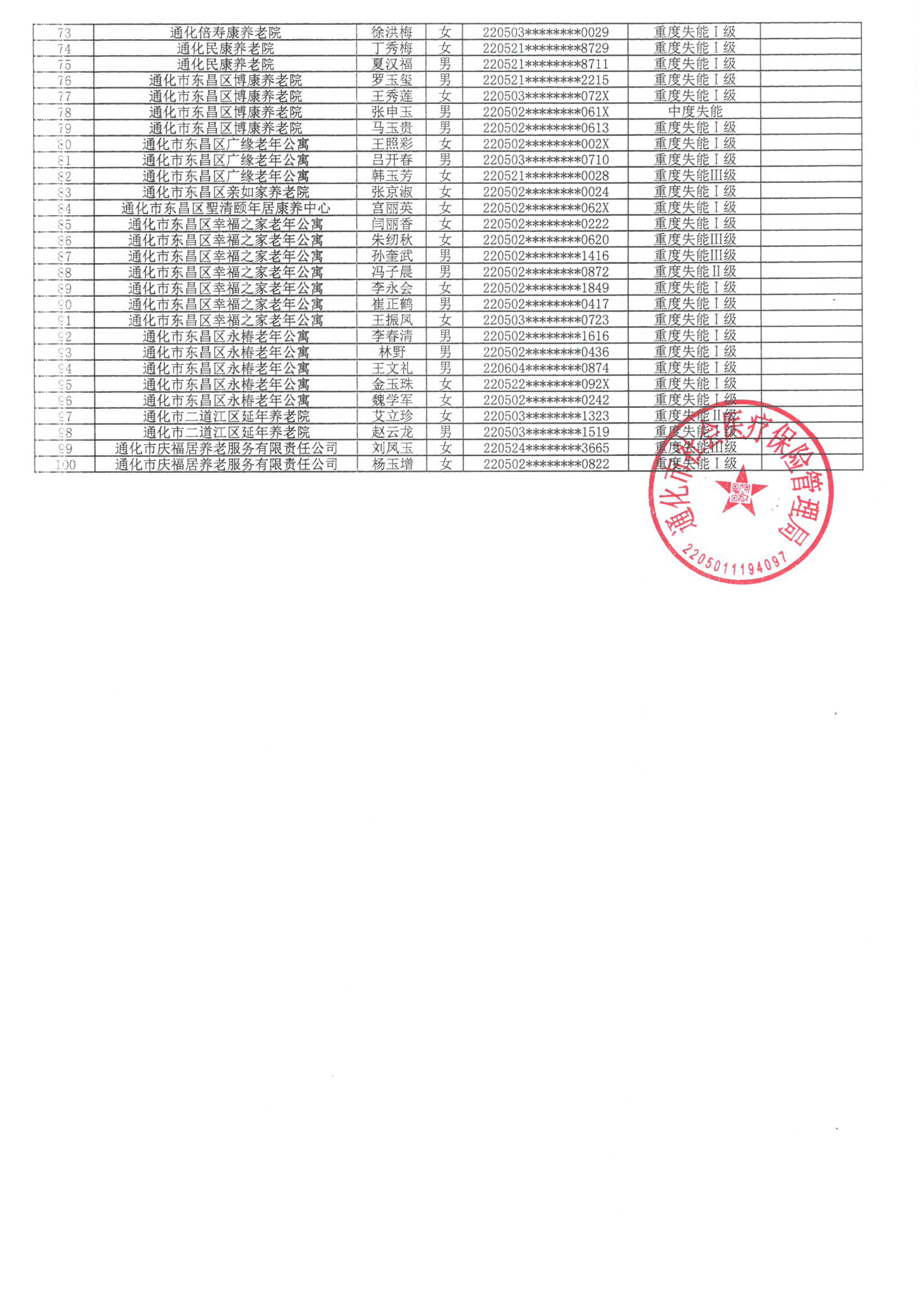 失能等级评估结果的公示