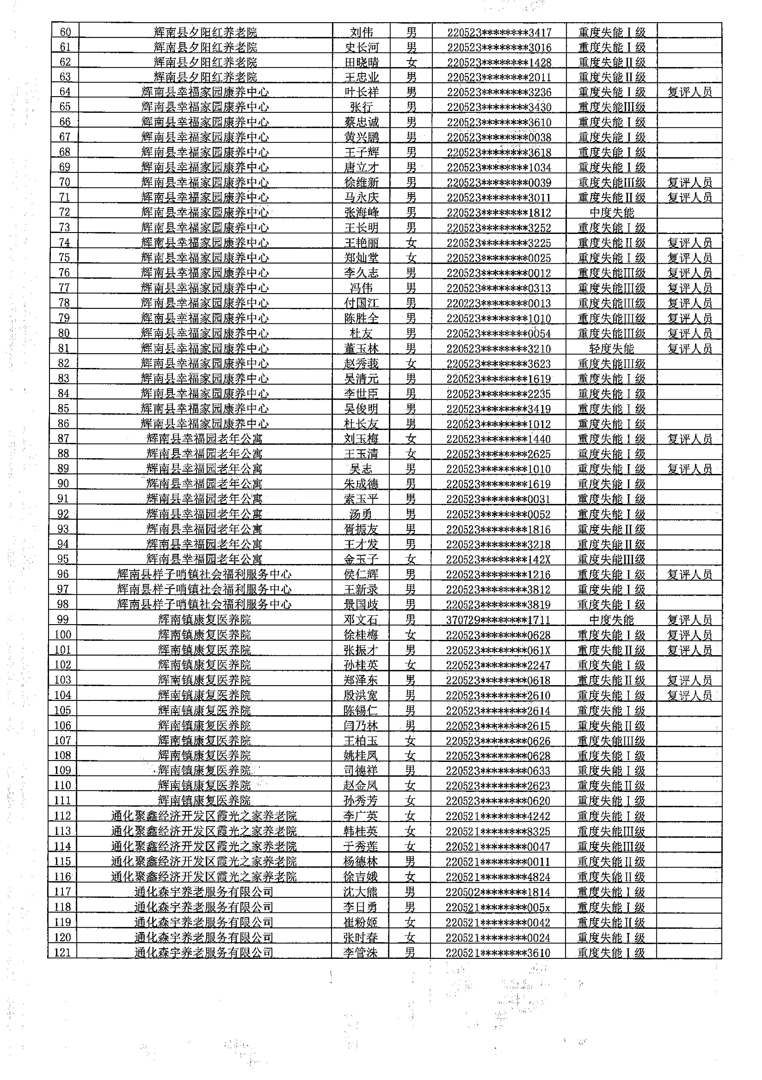 失能等级评估结果的公示