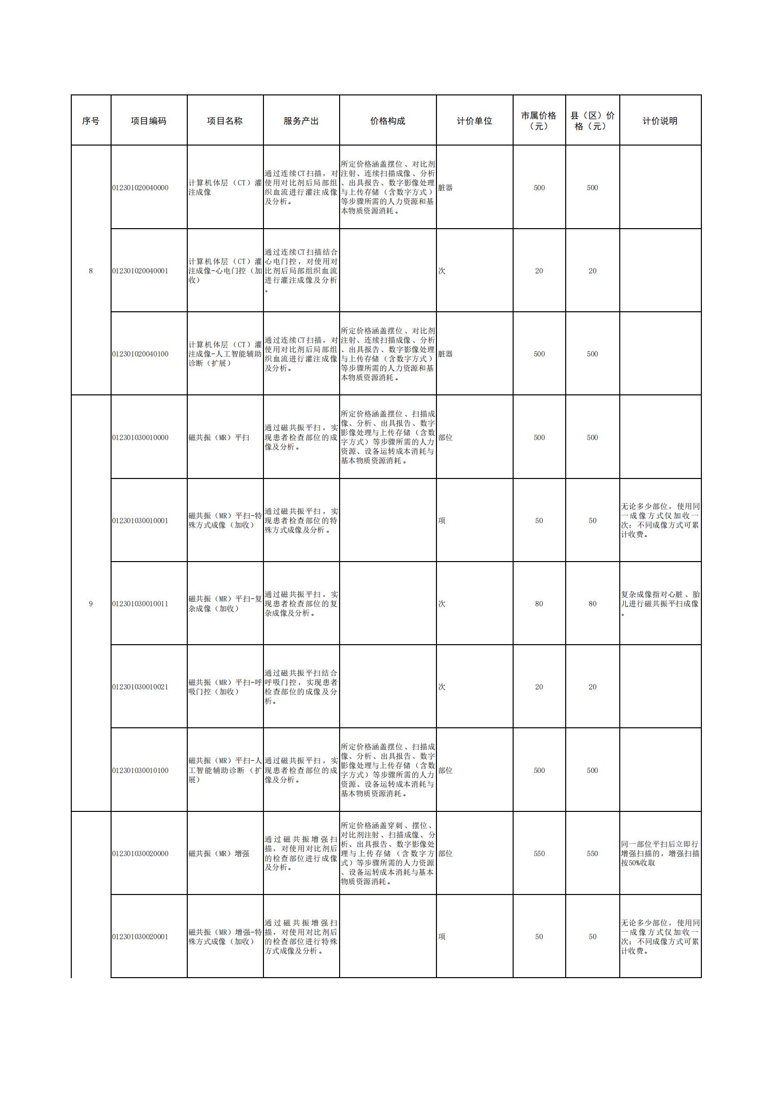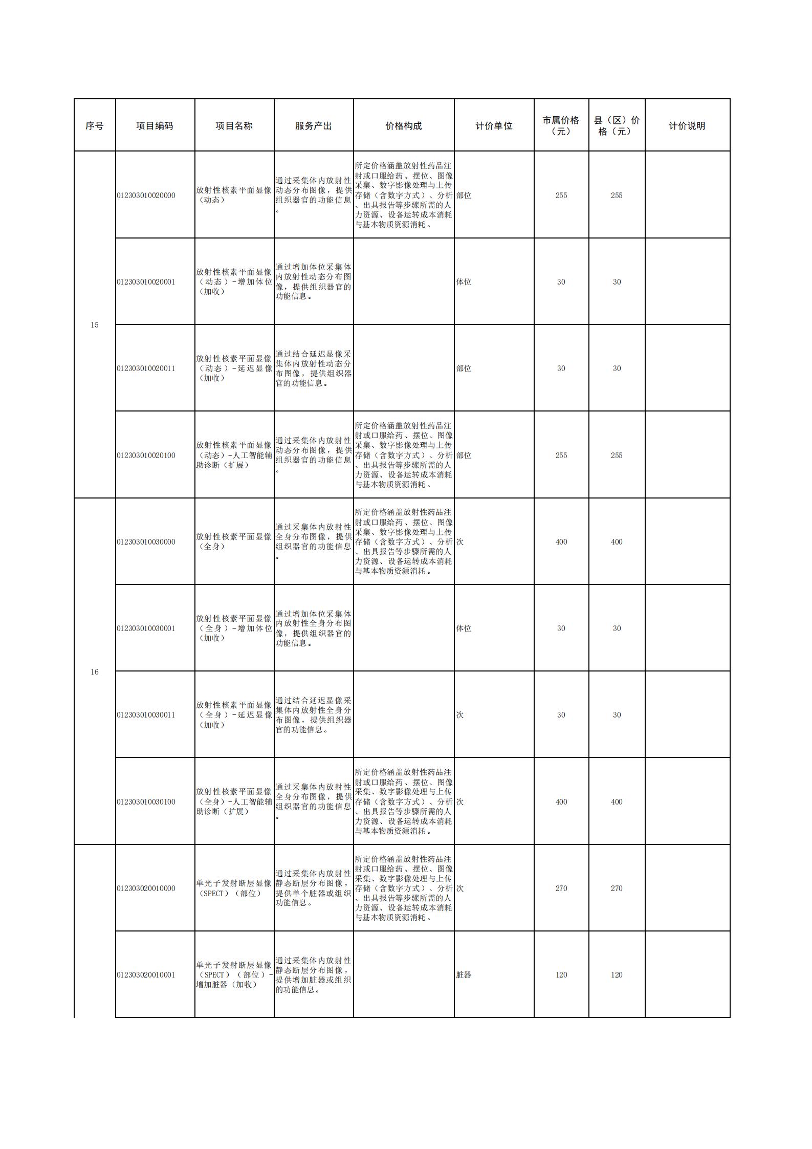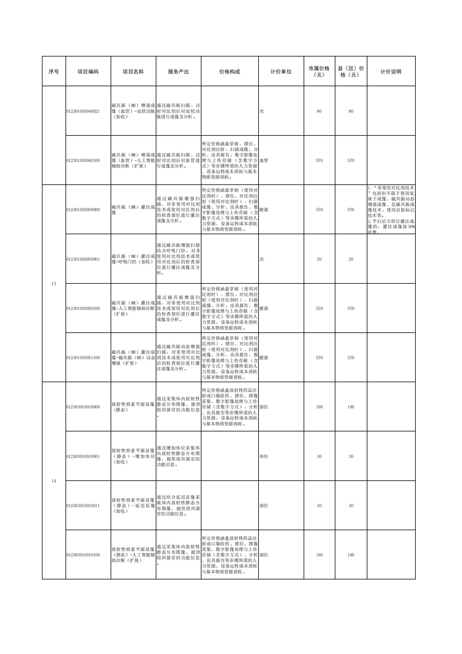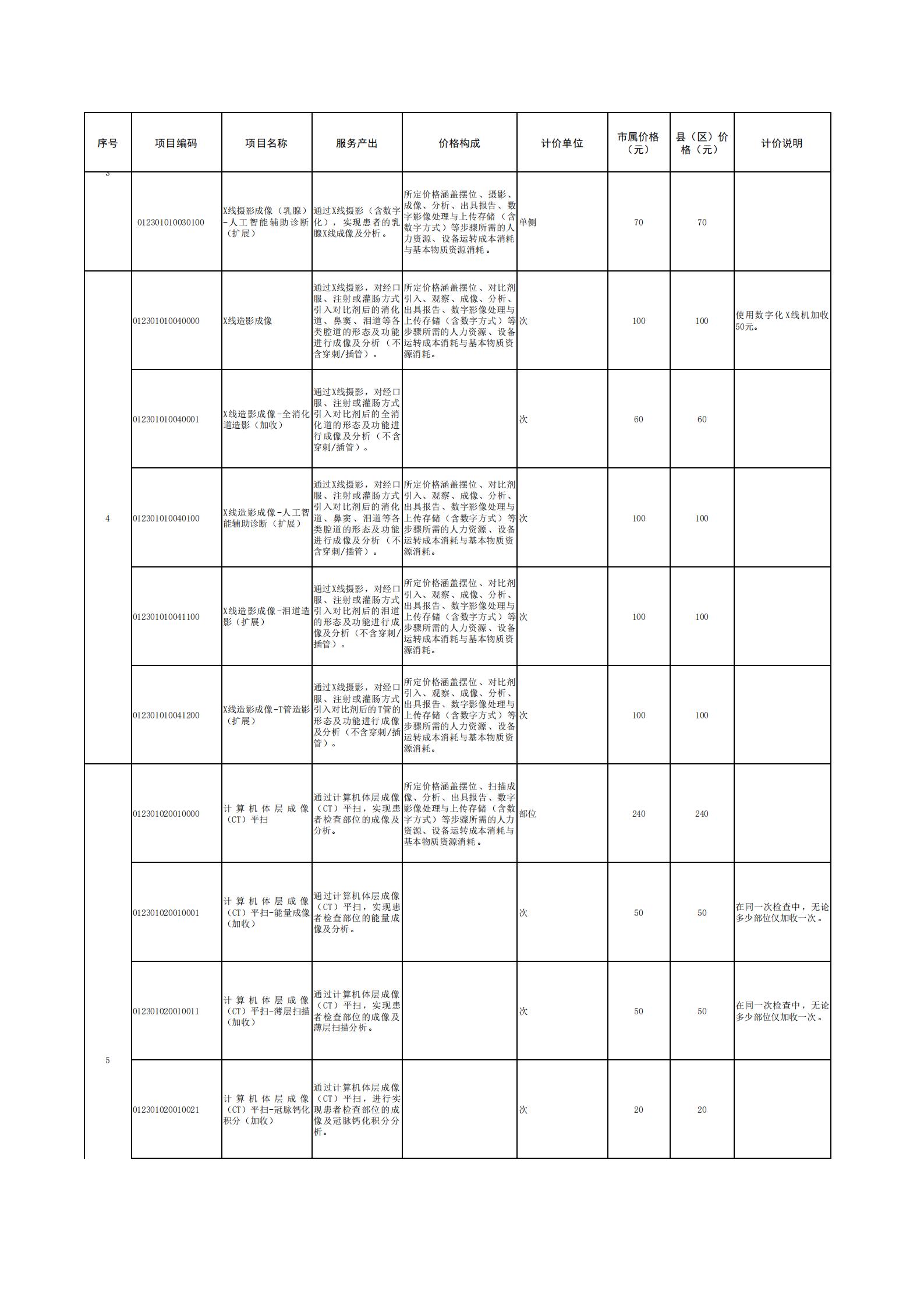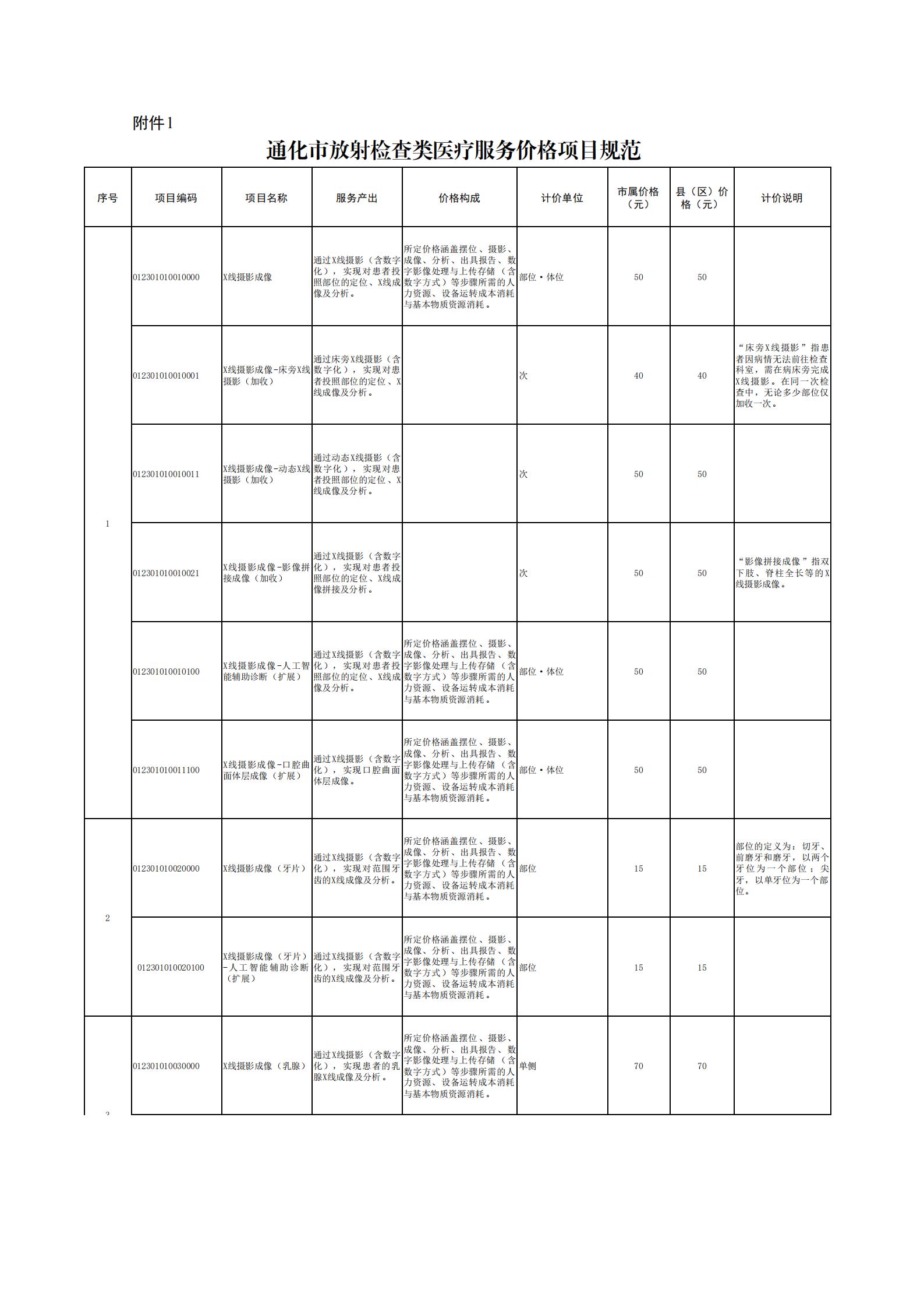 附件:1. 通化市放射检查类医疗服务价格项目规范