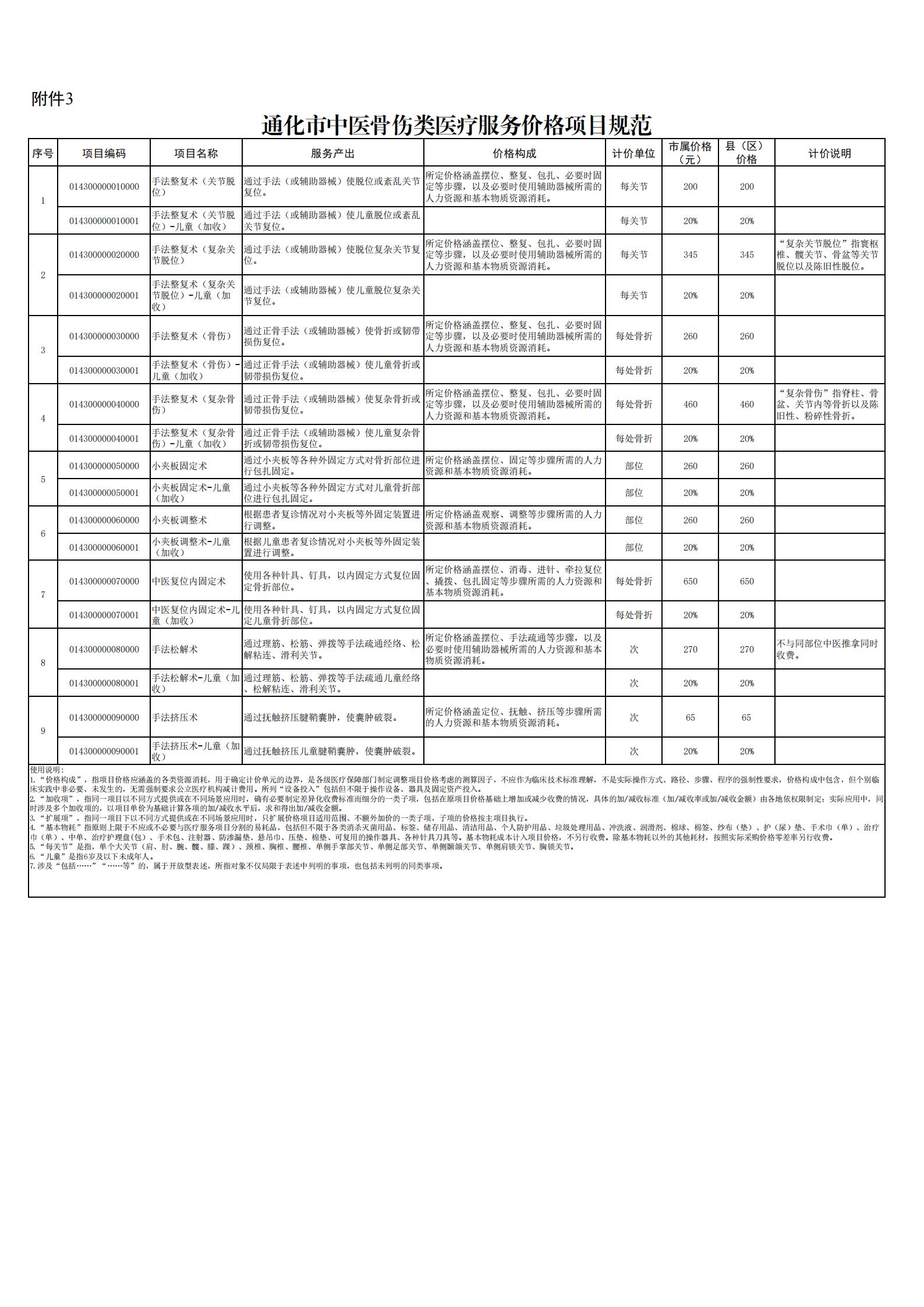 3. 通化市中医骨伤类医疗服务价格项目规范