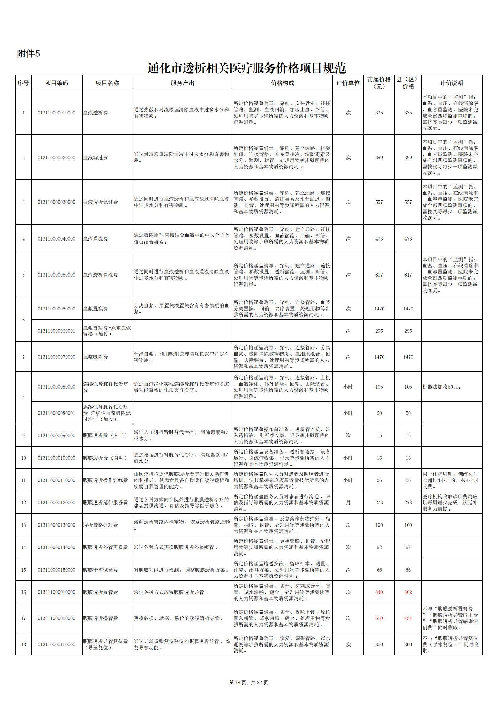 (一)透析相关医疗服务价格项目,于2025年9月1日起同步执行。