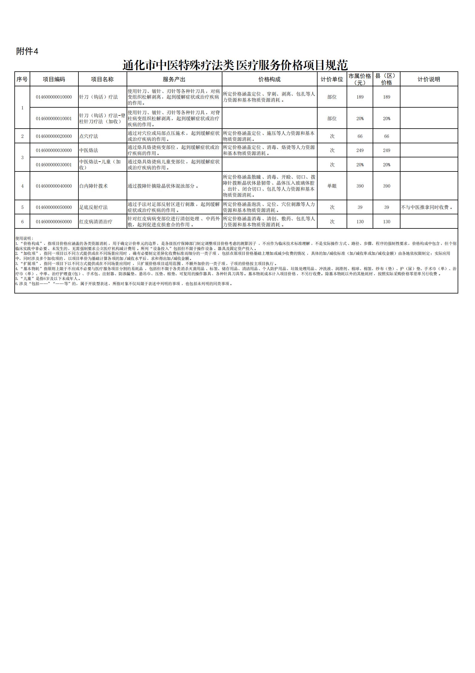 4. 通化市中医特殊疗法类医疗服务价格项目规范
