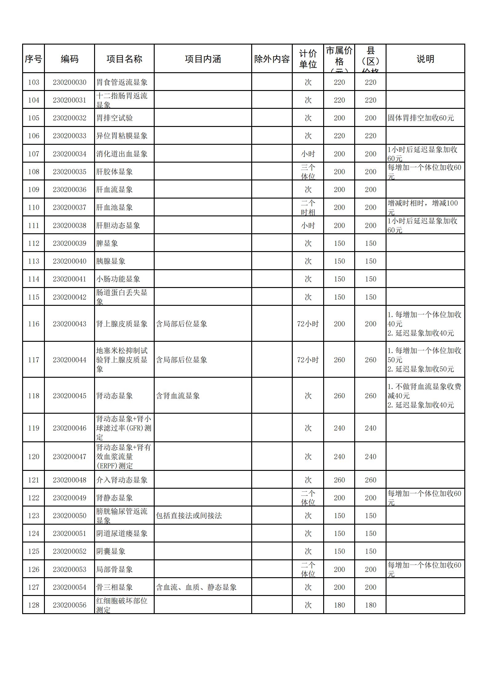 (二)放射检查类、综合诊查类、中医骨伤类、中医特殊疗法类医疗服务价格项目于2025年11月1日起同步执行。