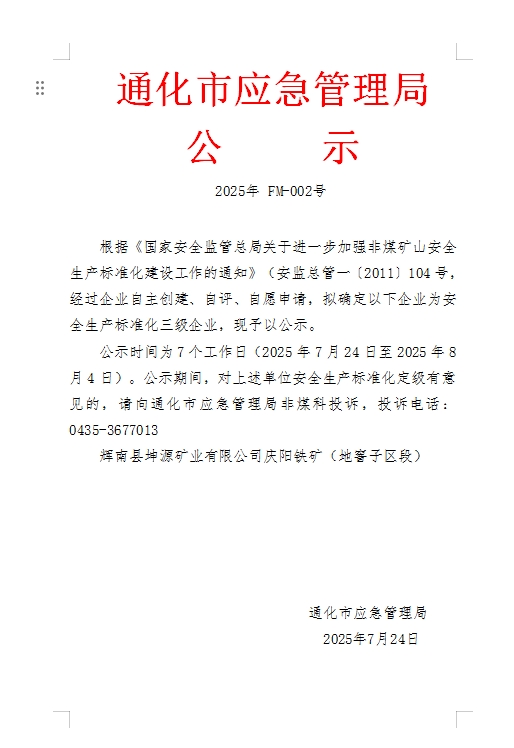 当前位置: 首页>>通化市应急管理局专题>>公示公告