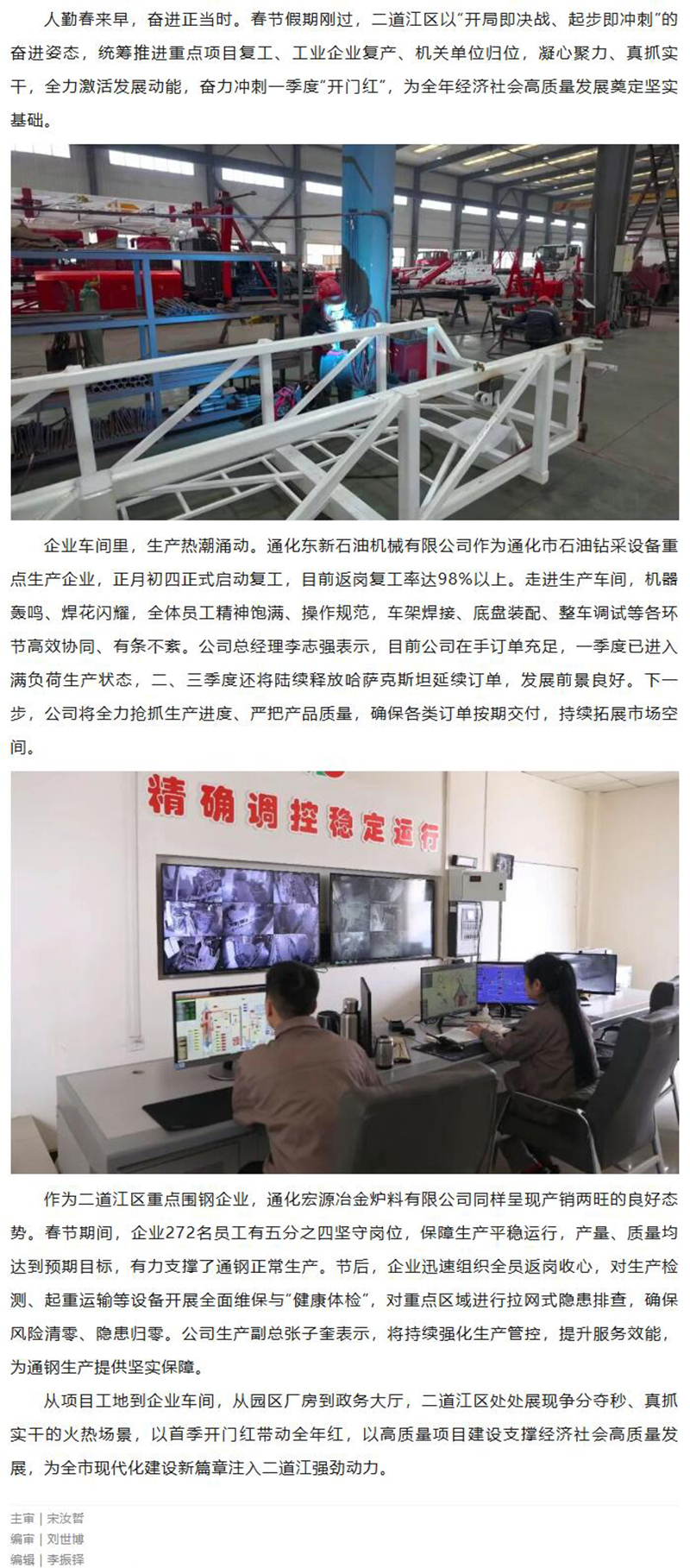 开工即冲刺 安全筑根基——二道江区全面复工复产 冲刺首季“开门红”