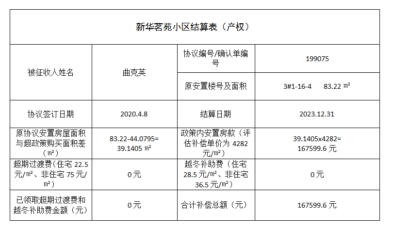 原安置房屋面积与超政策购买面积差×评估单价+需支付的过渡费和越冬补助费=安置补偿总金额167599.6元。