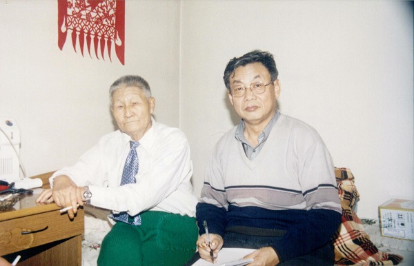 2005年1月25日 于哈尔滨工业大学访问抗联战士 李桂林(左)