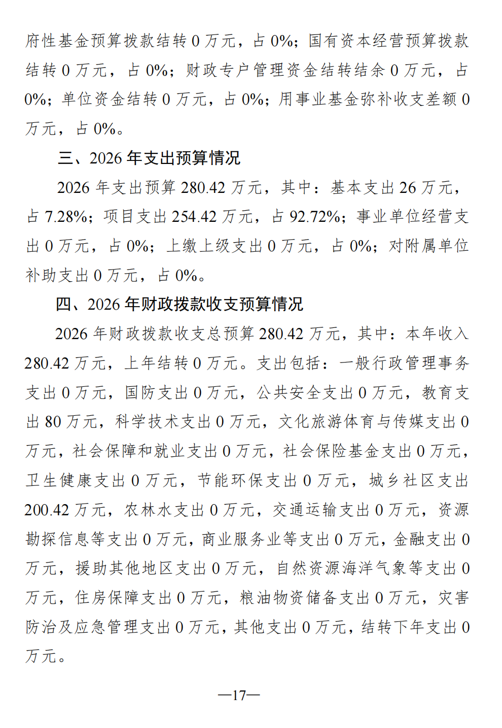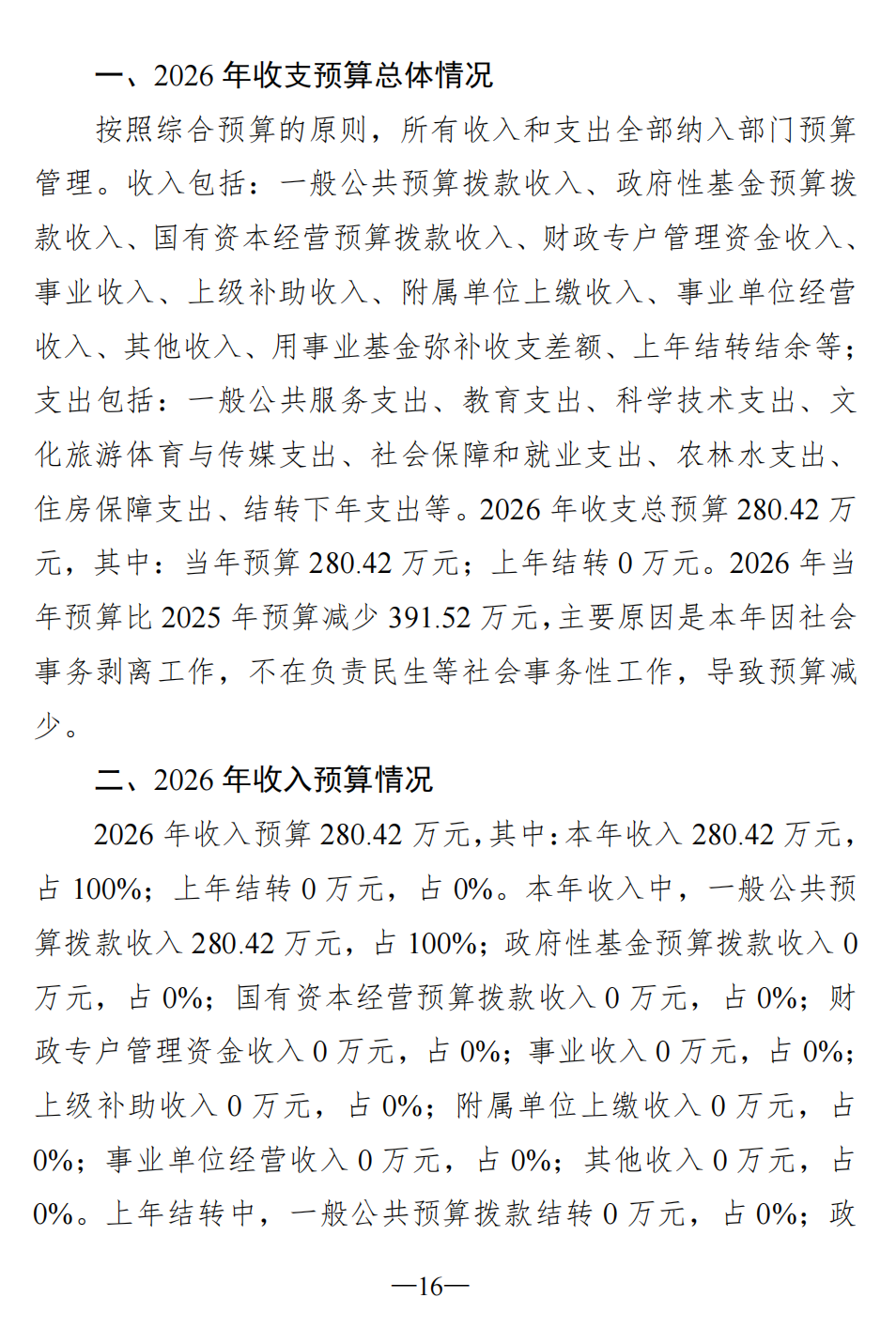 社会事业局2026年部门预算