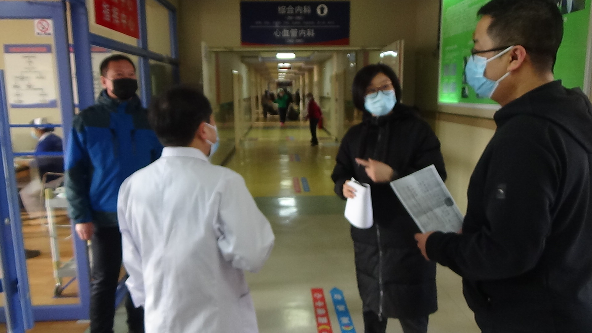 图为:执法人员询问案件有关责任人