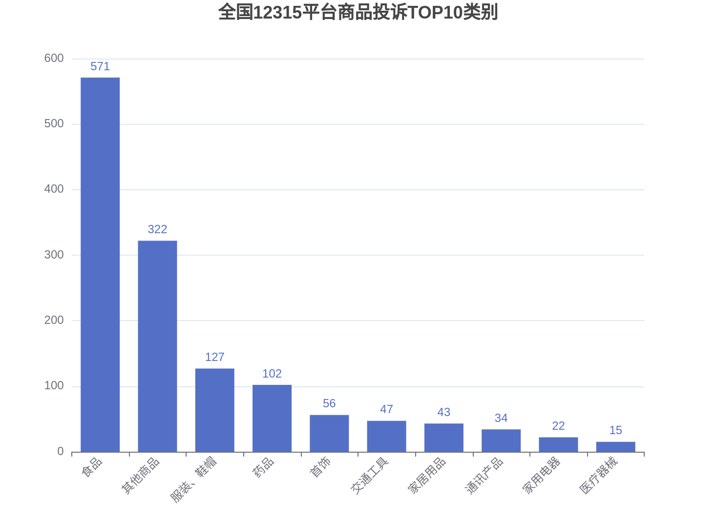 (二)从商品投诉来看,投诉受理量较大的商品主要有:食品(571件)、其他商品(322件)、服装、鞋帽(127件)、药品(102件),合计占比78.62%。增长较快的商品有其他商品(上升138.52%)、出版物(上升100%)、装修建材(上升50%)、通讯产品(上升13.33%)、交通工具(上升9.3%)。