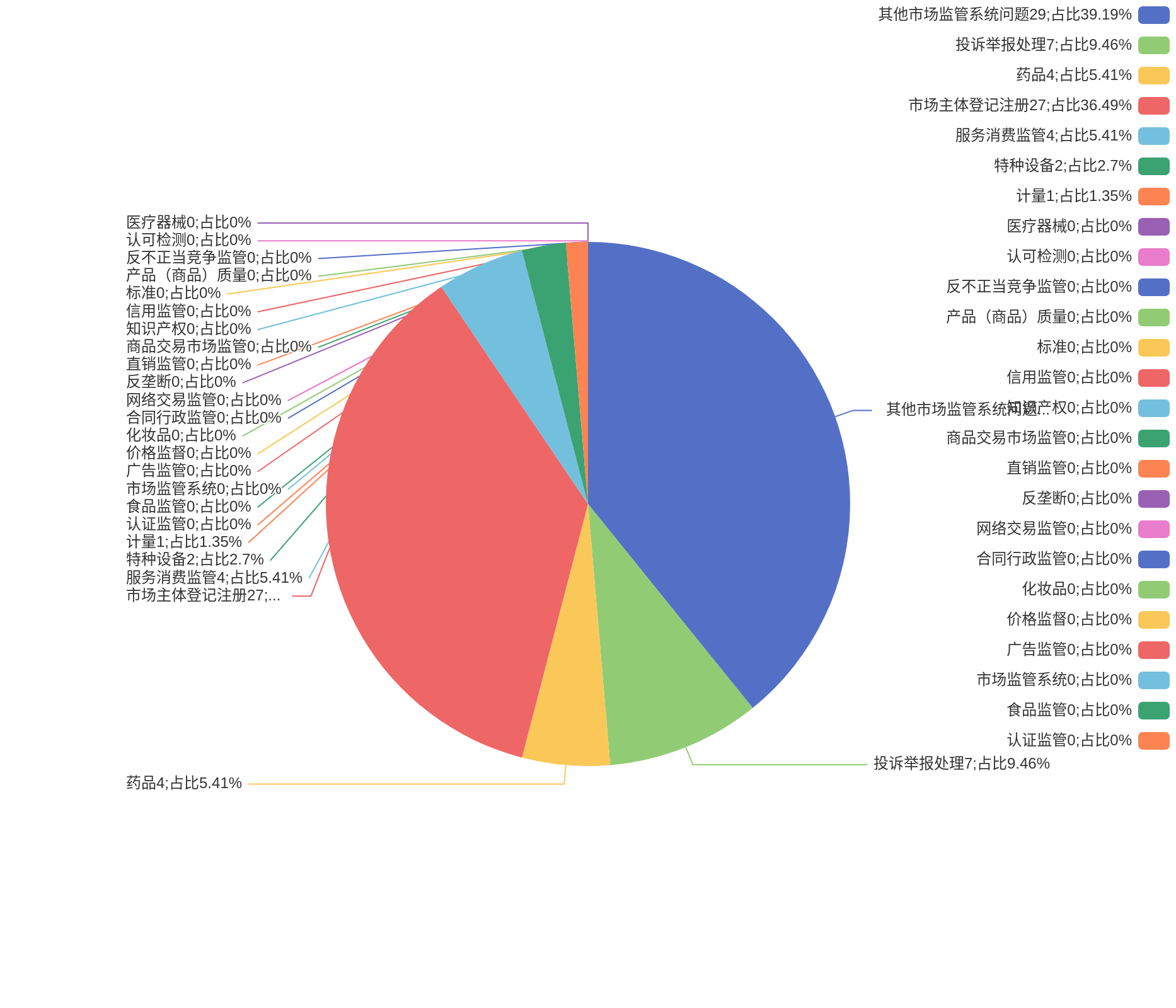 (一)从举报问题来看,举报量较大的问题主要有:其他市场监管领域违法行为(452件)、不正当竞争行为(160件)、侵害消费者权益行为(123件)、食品安全违法行为(91件),合计占比74.89%。增长较快的问题有垄断行为(上升600%)、网络交易违法行为(上升350%)、标准化违法行为(上升316.67%)、不正当竞争行为(上升158.06%)、传销行为(上升100%)。