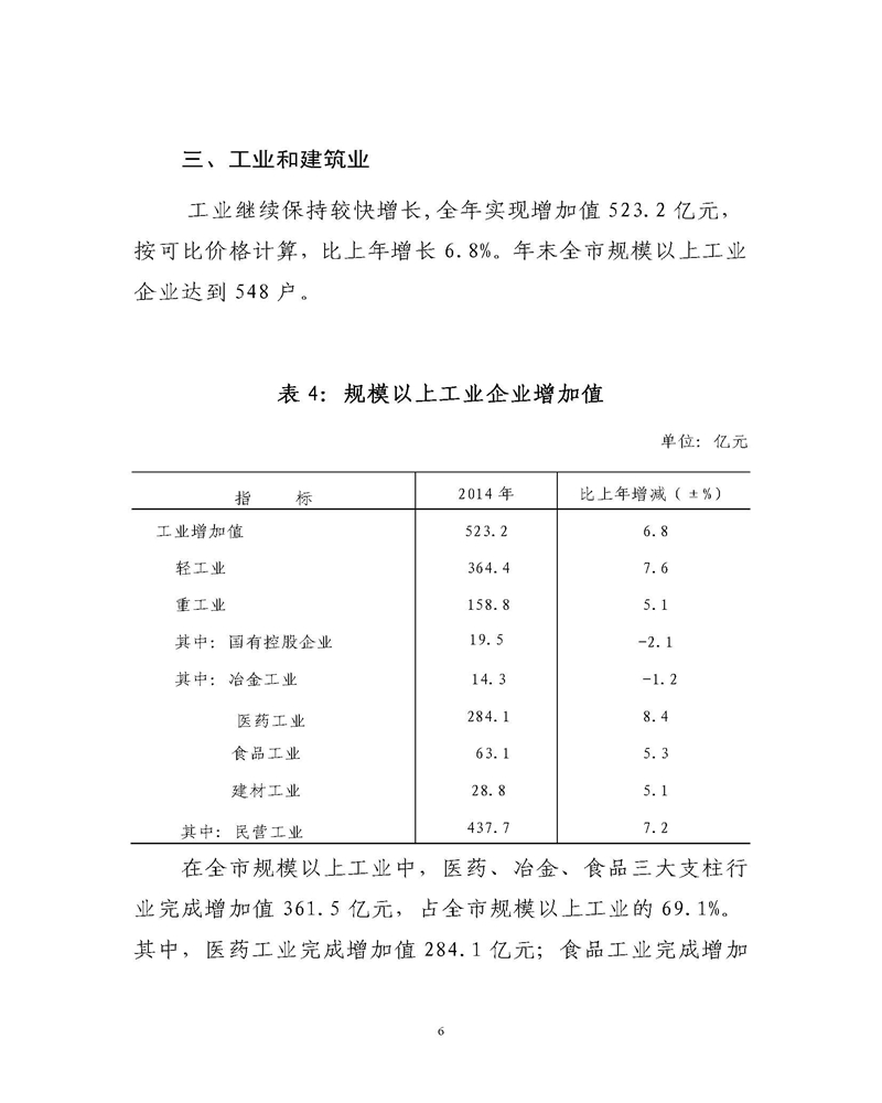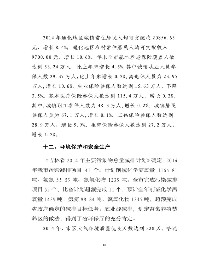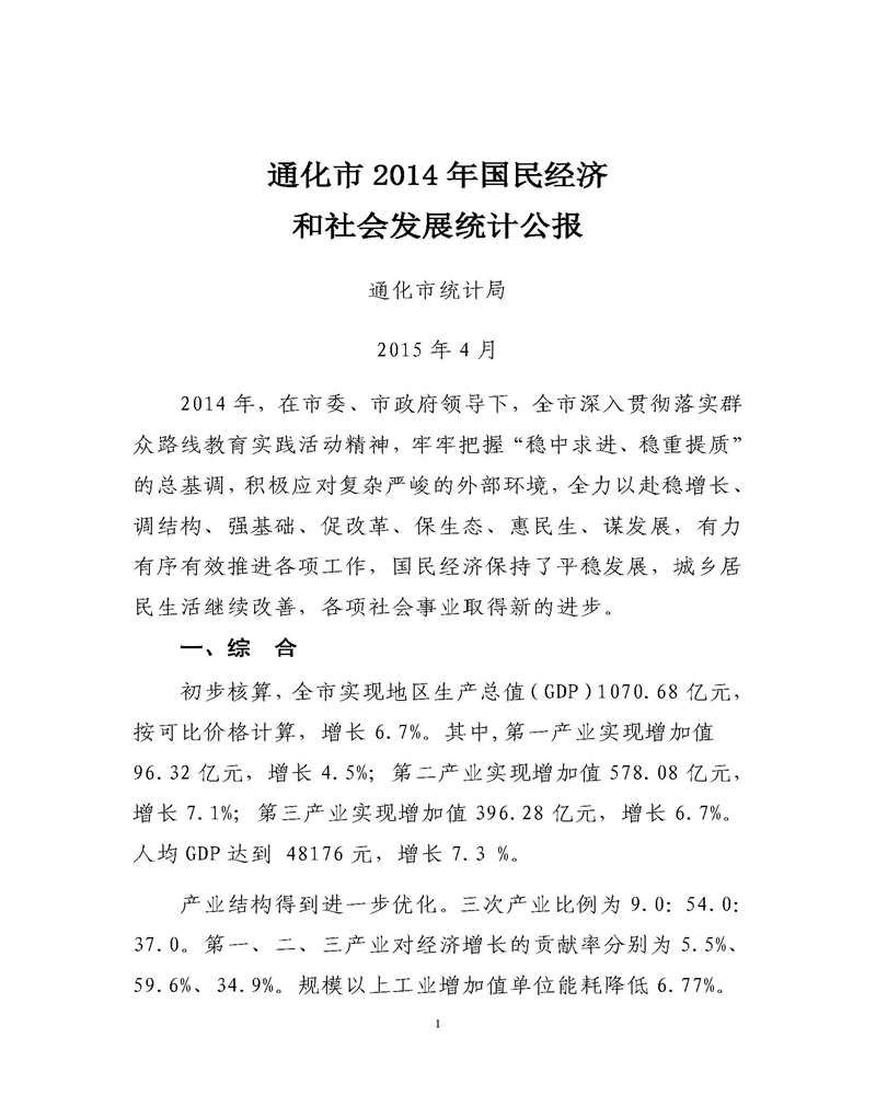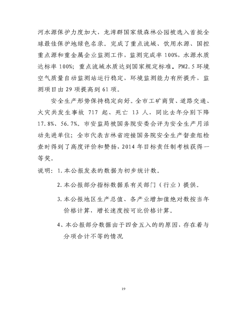 通化市2014年统计公报