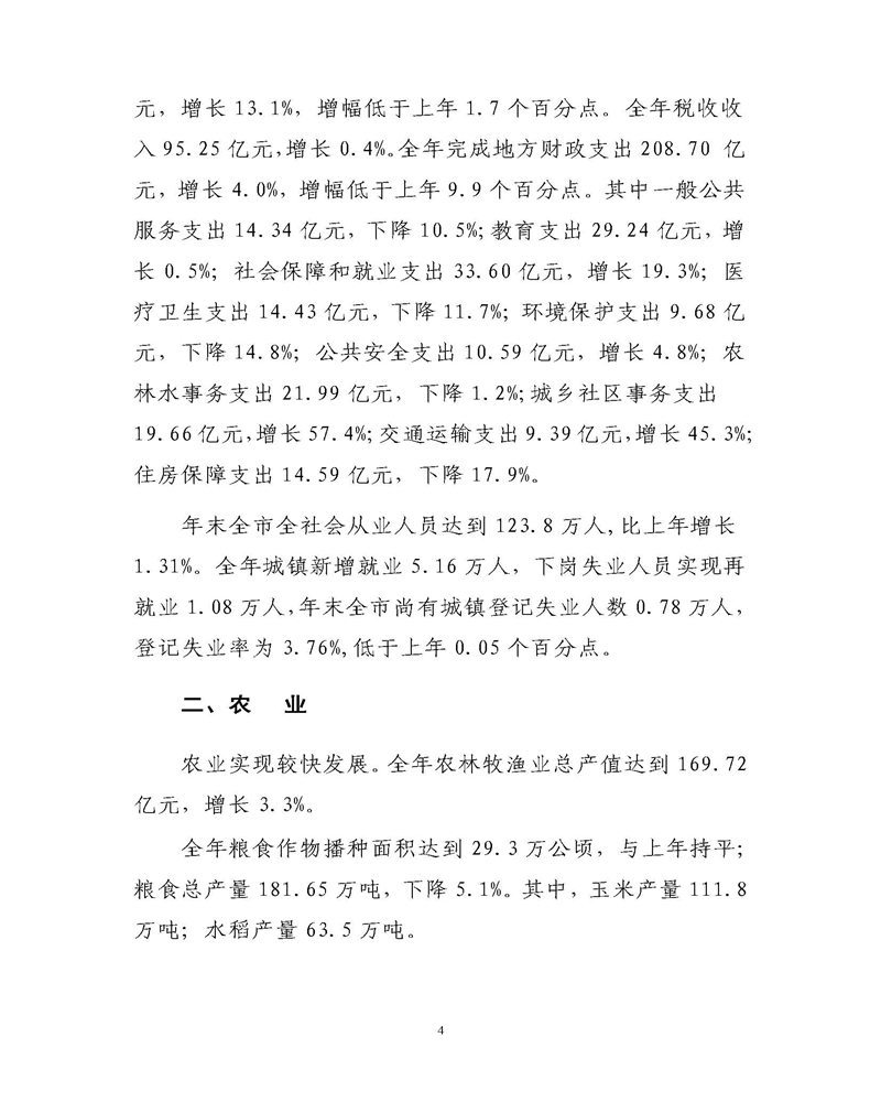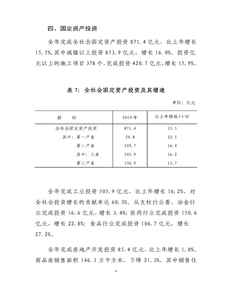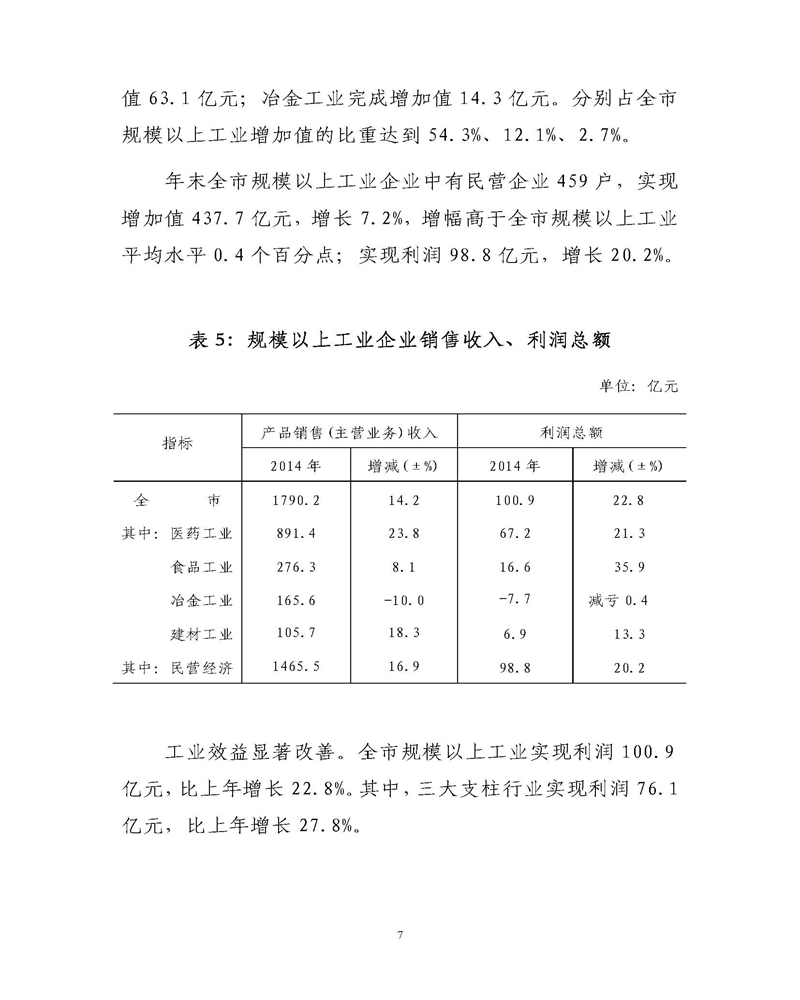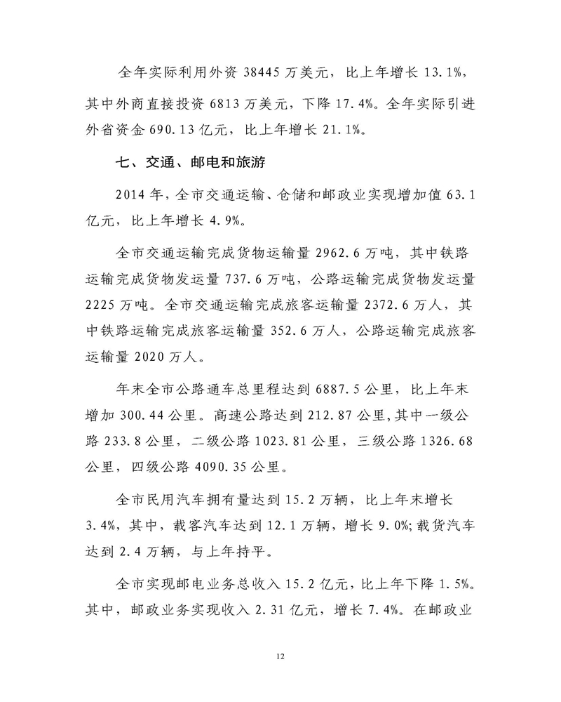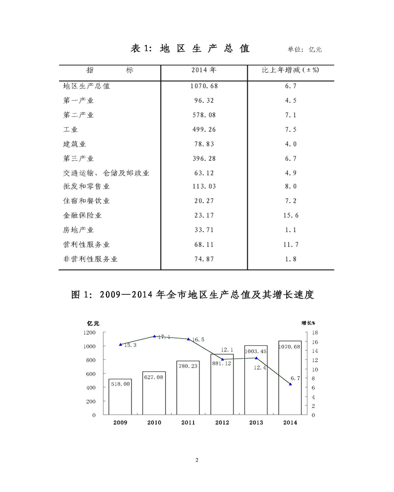 通化市2014年统计公报