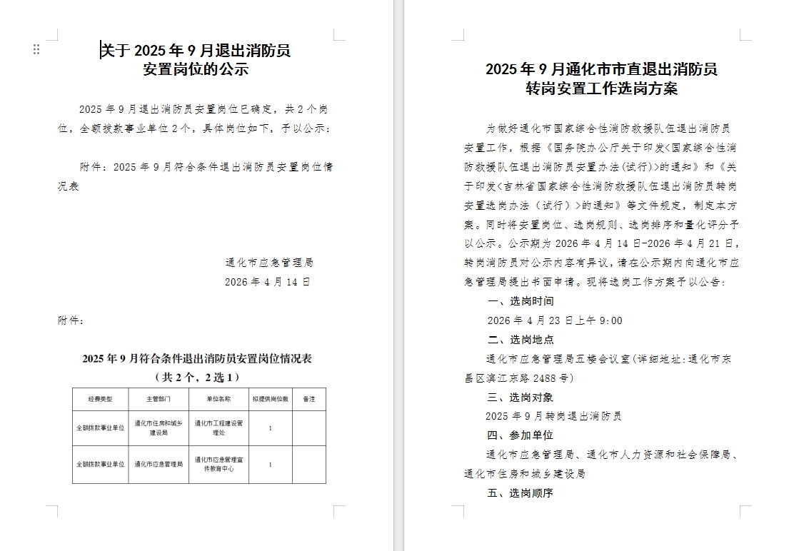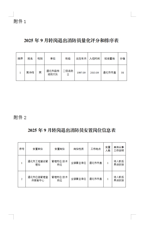 关于2025年9月退出消防员安置岗位的公示