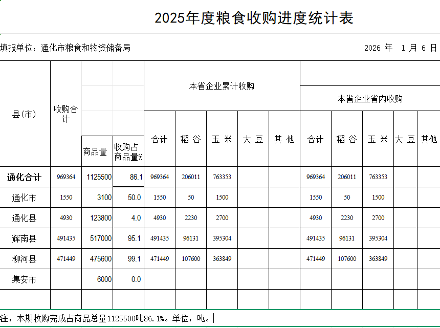 全市粮食收购进度及价格信息(1月6日)