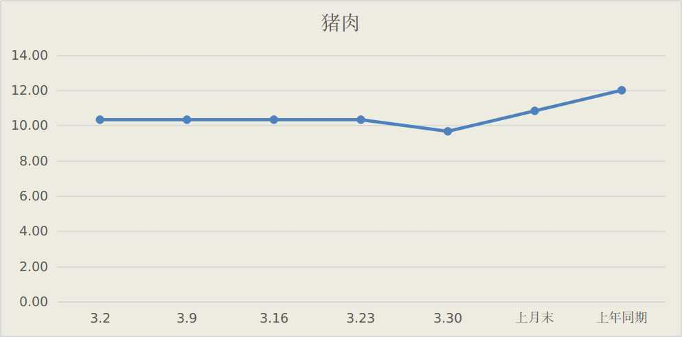据监测,三月份我市市场粮油肉蛋菜果等重要民生商品市场供应充足,品种齐全、需求平稳,价格整体稳中有降。重点监测的26种主要农副产品价格本月末同上月末环比15降11平,其中肉类价格全面下降,鸡蛋价格呈震荡走势,蔬菜价格季节性下降,水果价格稳中有降,粮油类、豆制品和奶制品价格保持稳定。
