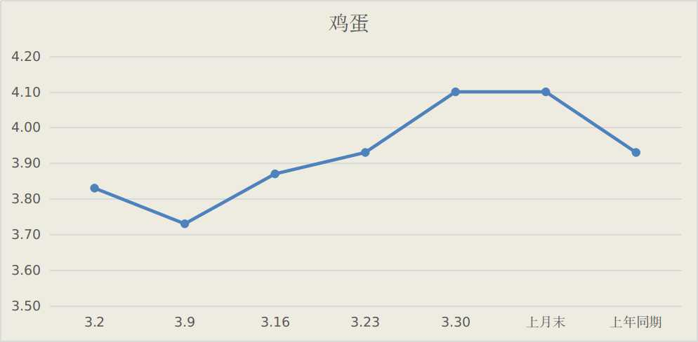 鸡蛋价格波动的原因:月初市场购销清淡,价格窄幅波动,中旬后受清明节备货及学校开学食堂集采需求带动,价格逐步向上。预计,随着节前集中备货需求消退,鸡蛋价格将以窄幅震荡为主。