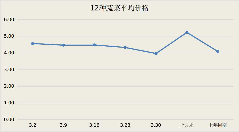 蔬菜价格波动的原因:本月气温回升,有利于蔬菜生长,本地棚膜蔬菜也陆续上市,蔬菜价格呈季节性下降走势。预计,随着气温进一步升高,本地大棚蔬菜进入集中上市期,市场供应量持续增加,价格将继续季节性回落。