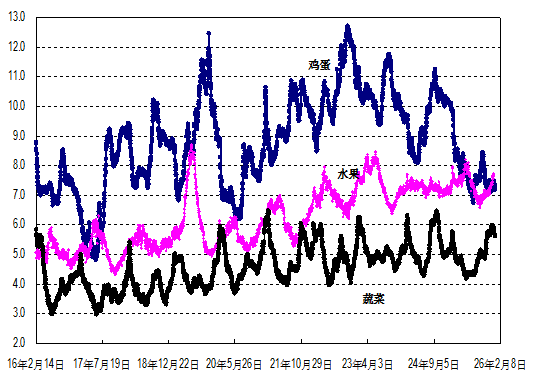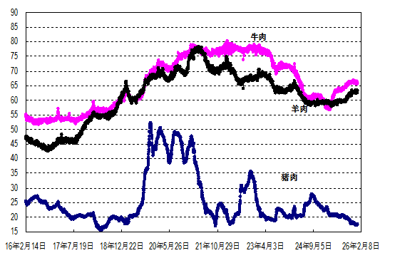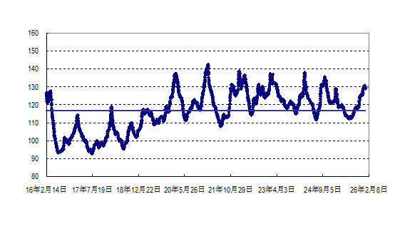 据农业农村部监测,2026年第6周(2026年2月2—8日,下同)“农产品批发价格200指数”为129.86(以2015年为100),比前一周降0.60个点,同比高3.39个点;“‘菜篮子’产品批发价格指数”为132.74(以2015年为100),比前一周降0.69个点,同比高4.13个点。