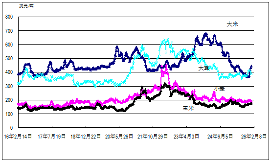 国际大宗农产品周均价格走势图(2016年2月至今)