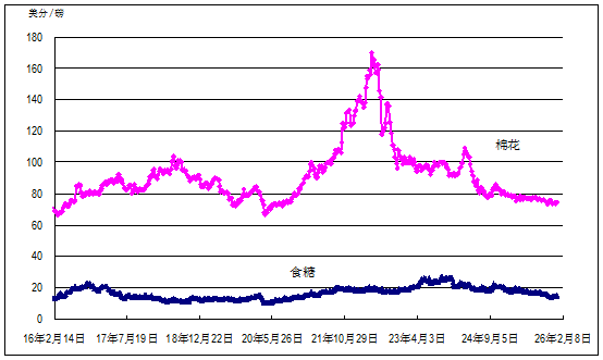 2.小麦、原糖和棉花价格环比小幅下跌。美国芝加哥商品交易所小麦最近期货合约收盘周均价每吨195美元,环比跌0.5%,同比低8.3%;国际糖料理事会原糖周均价每磅14.07美分(每吨310美元),环比跌2.7%,同比低23.5%;国际棉花价格指数(SM级)每磅73.08美分(每吨1611美元),环比跌1.5%,同比低6.1%。