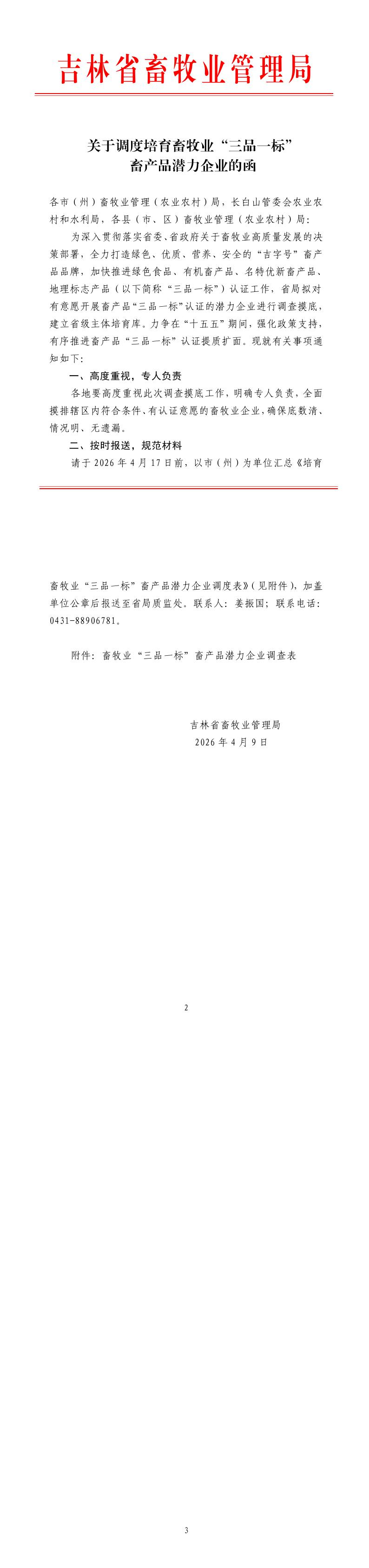 吉林省畜牧业管理局关于调度培育畜牧业“三品一标”畜产品潜力企业的函