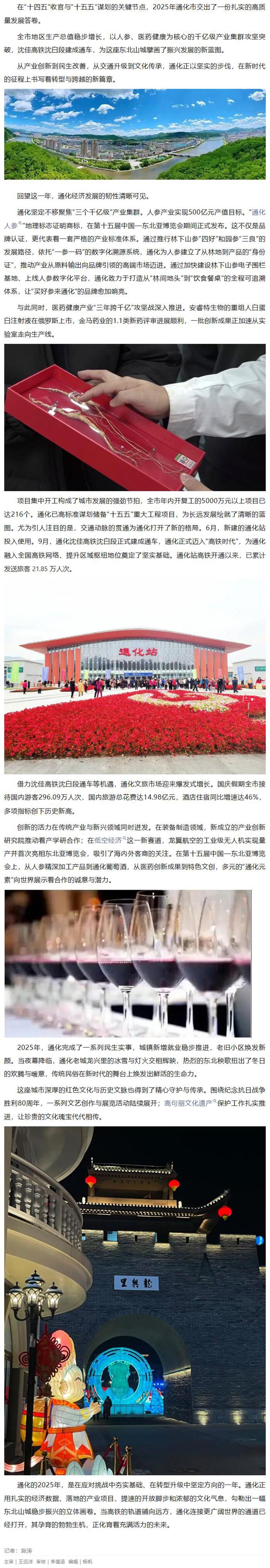 通化2025年高质量发展迈出坚实步伐